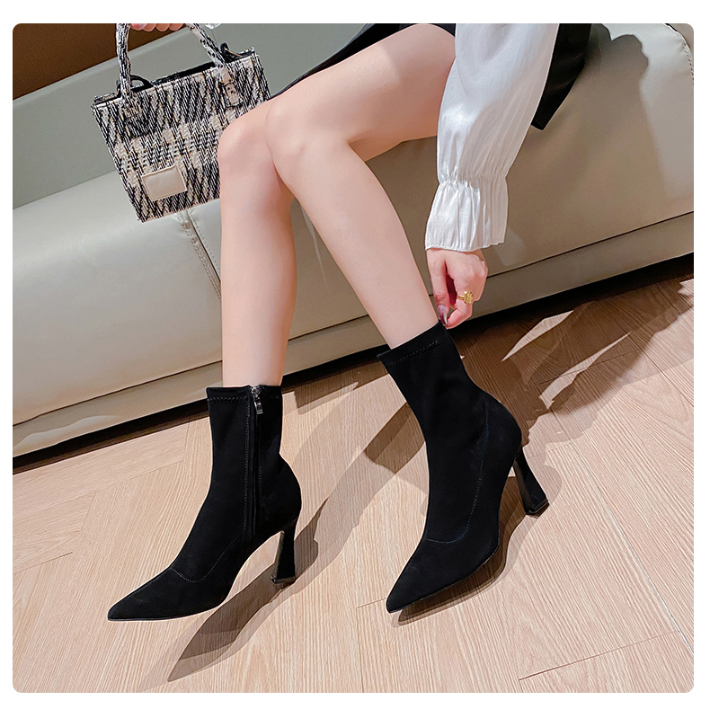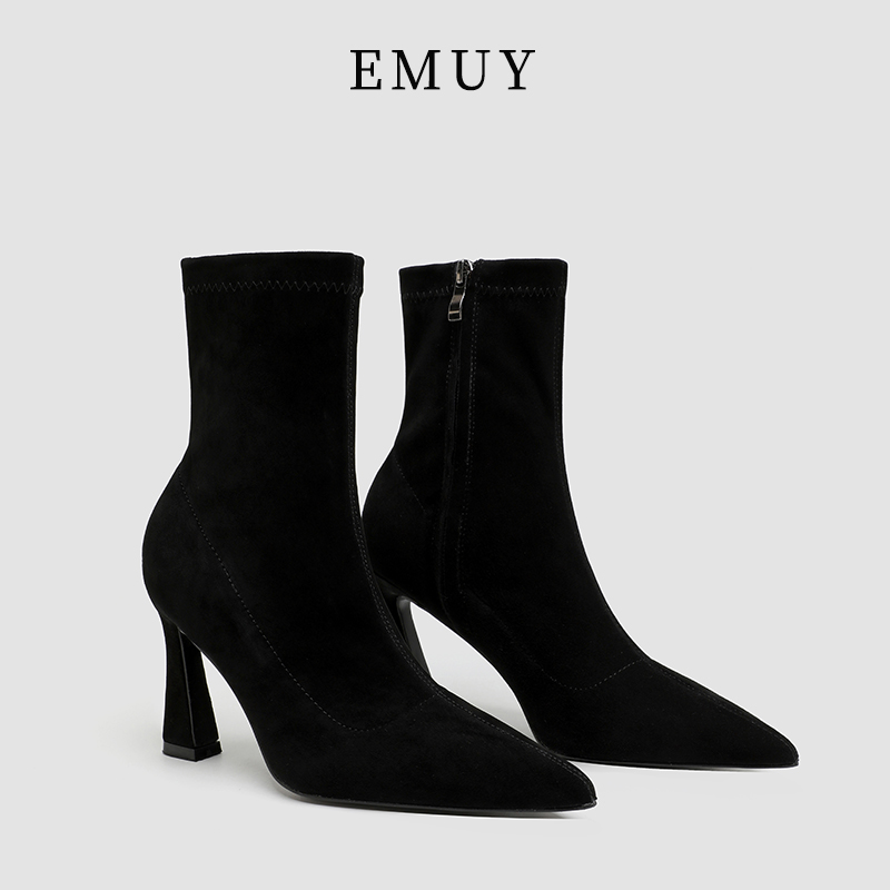 emuy Martens, демисезонные короткие сапоги с заостренным носом на высоком каблуке