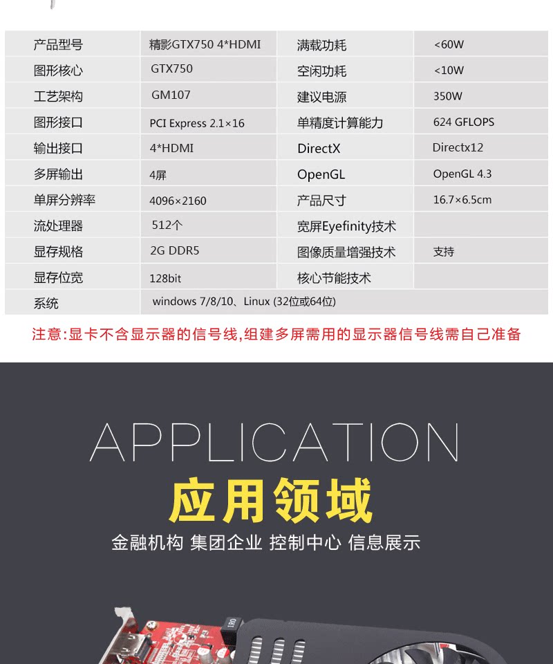 精影 GTX750 2G Четырехэкранный выход HDMI Стандартный интерфейс.