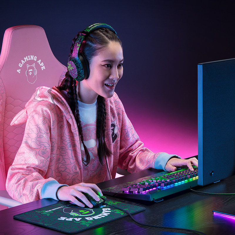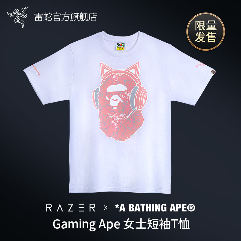 Razer Razer 丨 Bape Limited Ladies Casual T -Shirts Ape Человеческий белый рукав