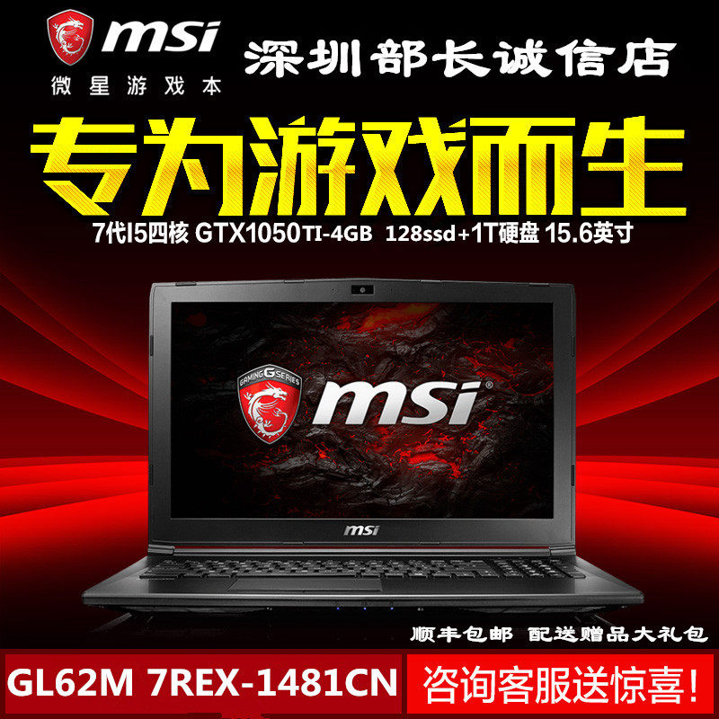 MSI/MSI GL62M 7REX-1481CN 7-го поколения I5 GTX1050TI Независимый игровой ноутбук