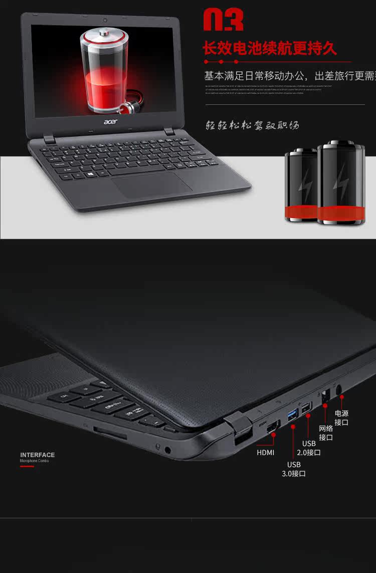 Acer, четырёхъядерный легкий портативный ноутбук, ES1-332, 11.6 дюймов, бизнес-версия