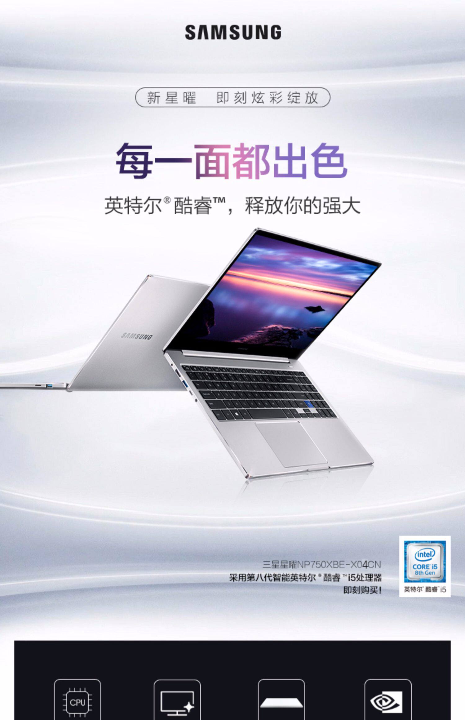 Samsung, легкий и тонкий ноутбук для школьников для отдыха, NP730×, 13.3 дюймов, бизнес-версия, intel core i5, 8G, 256G