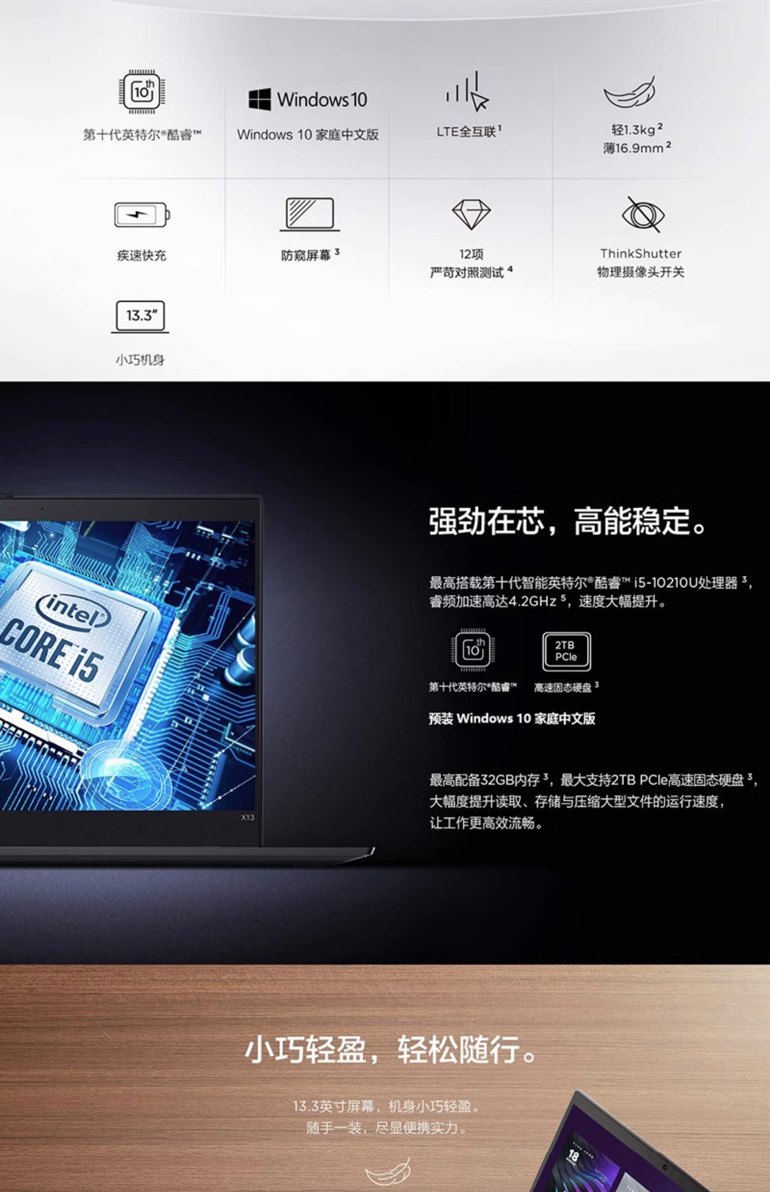 ThinkPad Lenovo, легкий и тонкий ноутбук, x13, x390, 2022, 13.3 дюймов