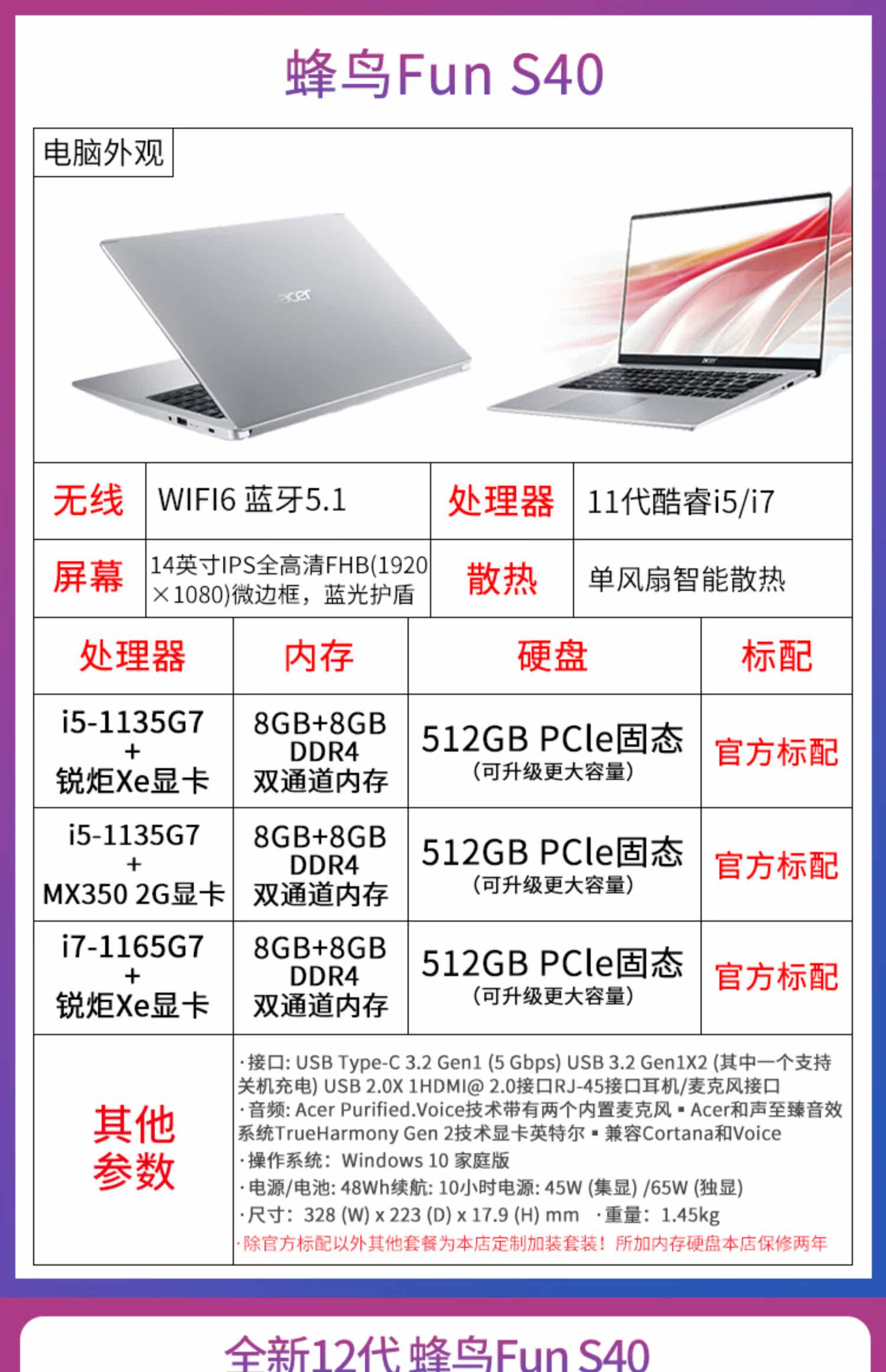 Acer Hongji Neo-Human Bird Fun/S40 11 Generation Core I5-1135G7 Sollene MX350 Полная версия крови Урок Урок Свет Портативная граница Высокая производительность REAL BANDE 2021 2021