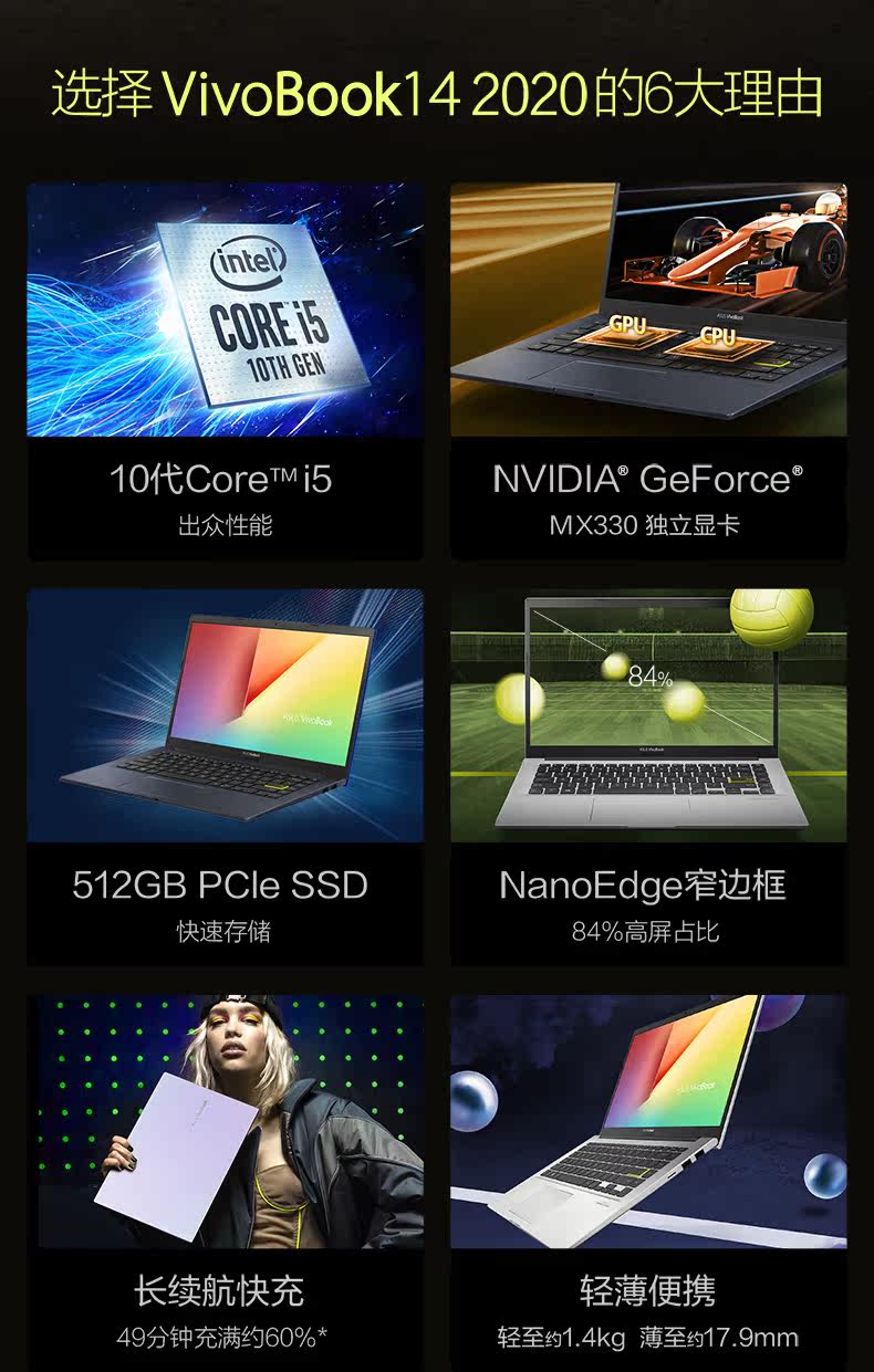 Asus, легкий портативный ультратонкий ноутбук для школьников, 2020, intel core i5, 14 дюймов, бизнес-версия