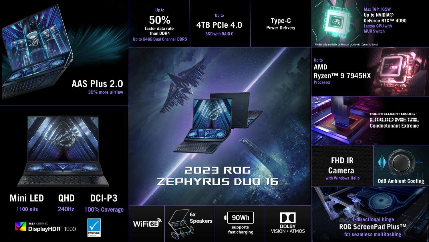 【2023 Ледяное лезвие 7】 Rog Ice Blade 7 Двухэкранный RX-7945HX+4090 ГААССИЯ 64G МЕМЕНТИКА 4T