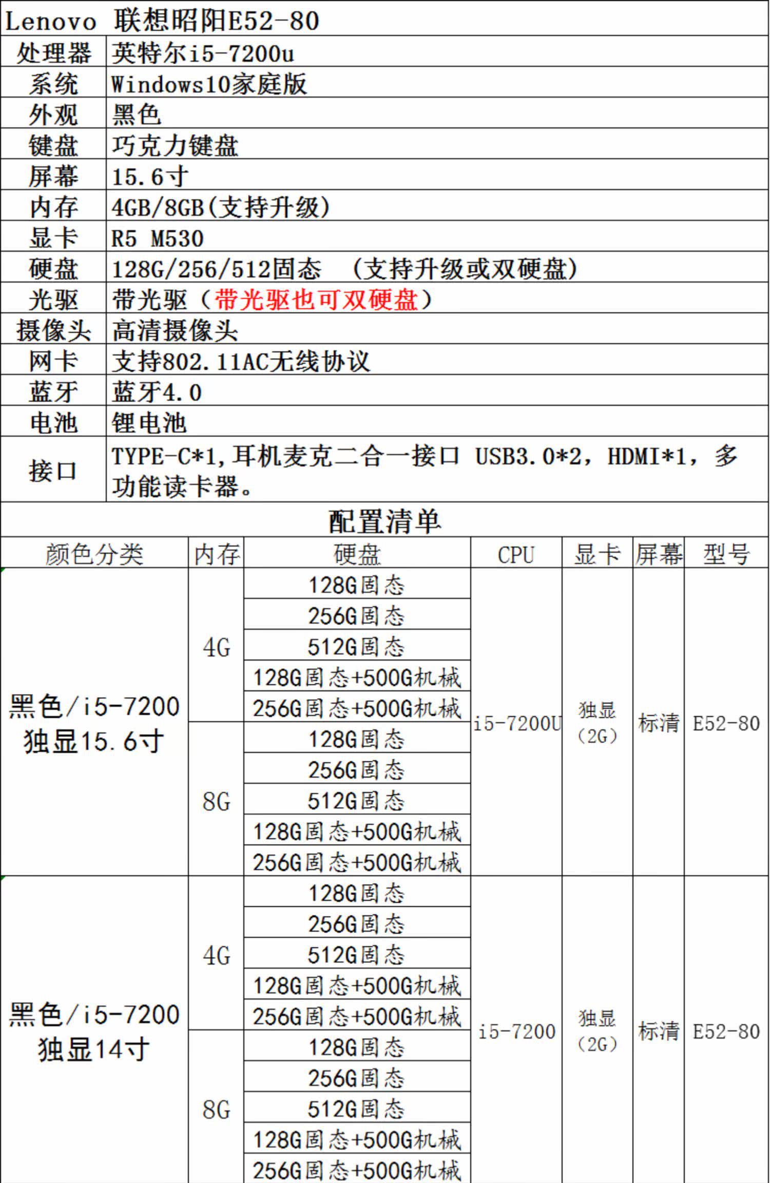 - Black/I5-7200 Независимый дисплей 2G15,6 дюйма