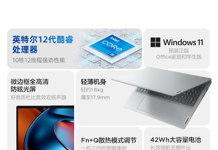 [Новый список продуктов] Lenovo/Lenovo IdeaPad15 Core 12 -го поколения I5 Light Thin Student Learning Business Business Game Entertainment Student Naptop 15,6 дюйма