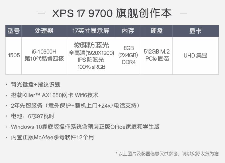 [12 -й процент -Бри, новый продукт первый запуск] Dell/Dell XPS17 9700 17 -INCH 10 -го поколения I5 CORE DESIGNER CREATION CREATION CREATION COMERATION