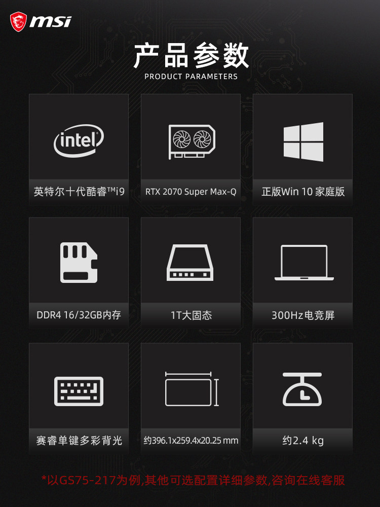 | Тип пакета: | 【GS75-217】 I9-10980HK/RTX2070S/300 Гц |