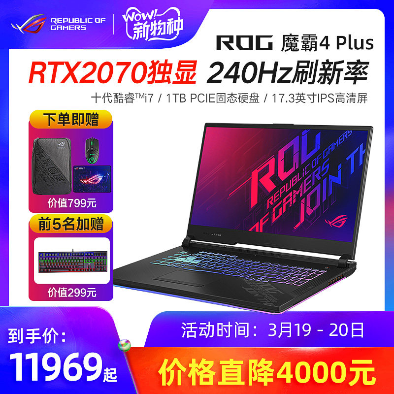 ROG, игровой ноутбук, 4 plus, intel core i7, RTX2070, 17.3 дюймов, 240гц, официальный флагманский магазин