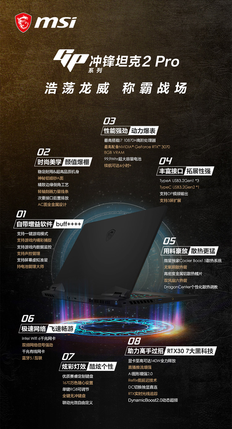 MSI, металлический легкий и тонкий танк с зарядкой, ноутбук, игровой экран, 2021 года, GP66, intel core i7, RTX3060, 3070, 144гц