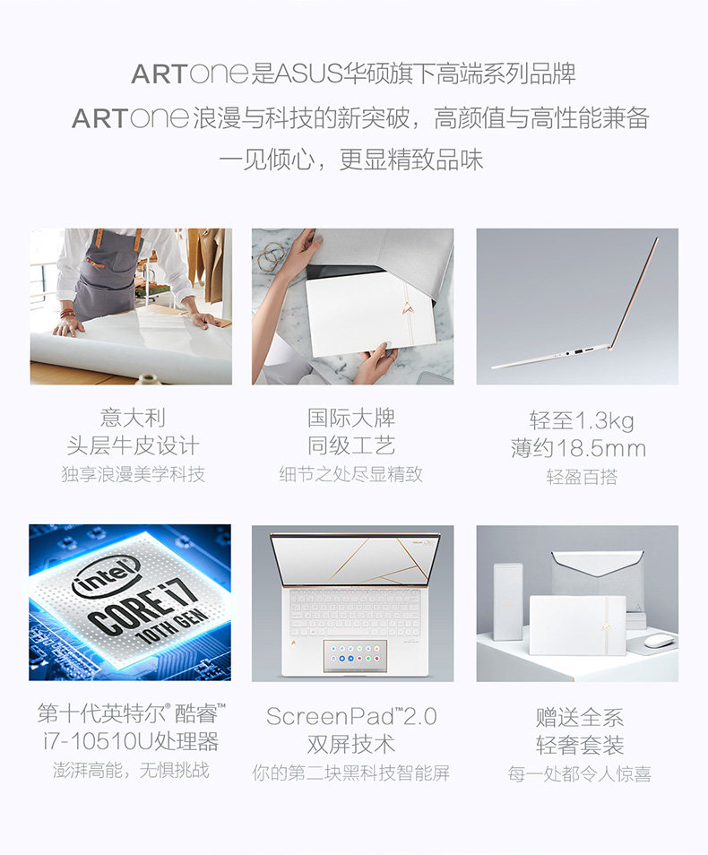 Asus/Asus Artone Ten Generation Core i7 Кожа ручной работы 18K золотой светло -световой бюллетень 13,3 -3 -дюймовый 95%экрана с двойным экраном легкой тонкий ноутбук компьютер