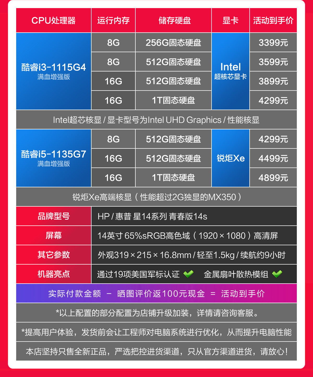 | Цвет: | 1 Получите картину наличными при оценке 100 юаней наличными, 2 ограниченная 3-летняя служба расширения-599 юаней, 3 Поддержите 15 дней без причины, чтобы вернуть товар, 4 Срок действия времени активности: 31 декабря, Core 11-го поколения I3-1115G4 Полная кровь Улучшенная версия, Корт 11-го поколения I5-1135G7 Полная кровяная версия |