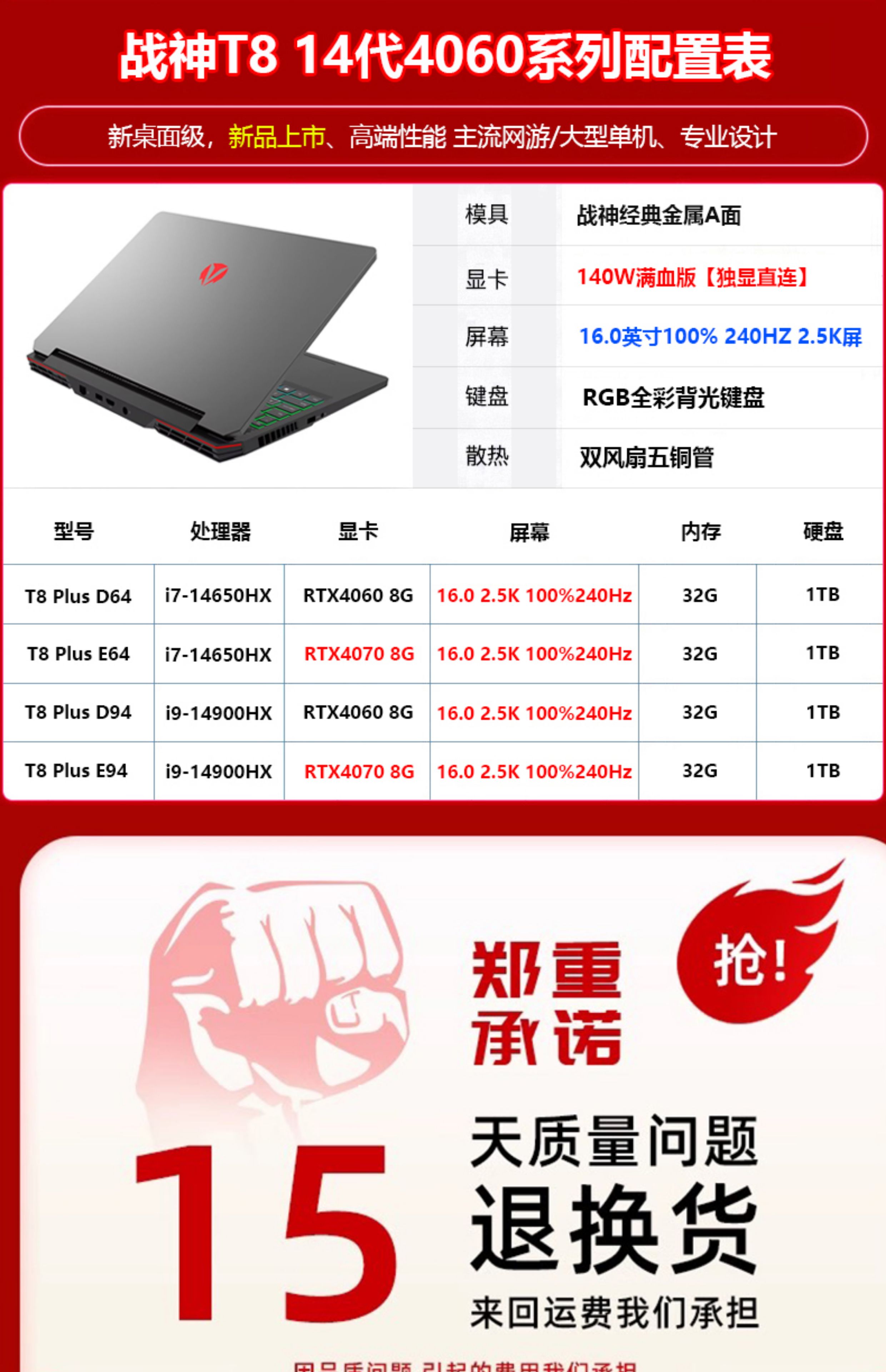 | Цвет: | Game of War T72 Версия игры: i7-12700h/rtx3050/16,0 дюйма 100% цветовой гамму 165 Гц 2,5 тыс. Экран, God of War T8pro D73 E-Sports: I7-13700HX/RTX4060/16,0 дюйма 100%цветовой гамму 165 Гц 2,5K Экран, God of War T8D63 Версия E-Sports: I7-13650HX/RTX4060/16,0 дюйма 100% цветовой гамму 165 Гц 2,5K Экран, God of War T8pro E73 Флагманская версия: I7-13700HX/RTX4070/16,0 дюйма 100% 165 Гц 2,5K Экран, Game of War T8pro D94 Игровая версия: I9-14900HX/RTX4060/16,0 дюйма 100% цветовой гамму 165 Гц 2,5K Экран, God of War T8D93 Флагманская версия: I9-13900HX/RTX4060/16,0 дюйма 100%цветовой гамму 240 Гц 2,5K Экран, God of War T8plus D64 E-Sports Версия: I7-14650HX/RTX4060/16,0 дюйма 100% цветовой гамму 240 Гц 2,5K Экран, Game of War T8plus E64 Версия игры: i7-14650HX/RTX4070/16,0 дюйма 100% 240 Гц 2,5K Экран, [Новая модель] God of War T8uitra E9 Флагманская версия: U9-185H/RTX4070/16,0 дюйма 100%цветовой гамму 240 Гц 2,5K Экран |