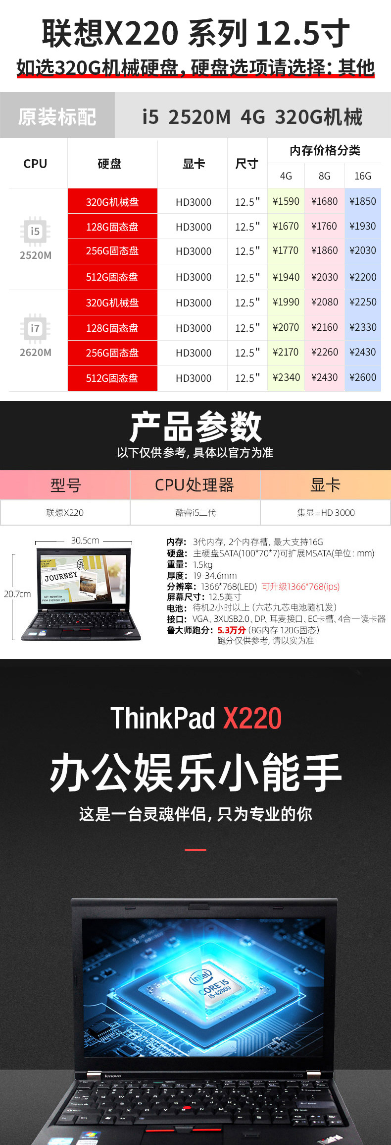 Lenovo, легкий и тонкий ноутбук, thinkpad, x220, intel core i5, intel core i7