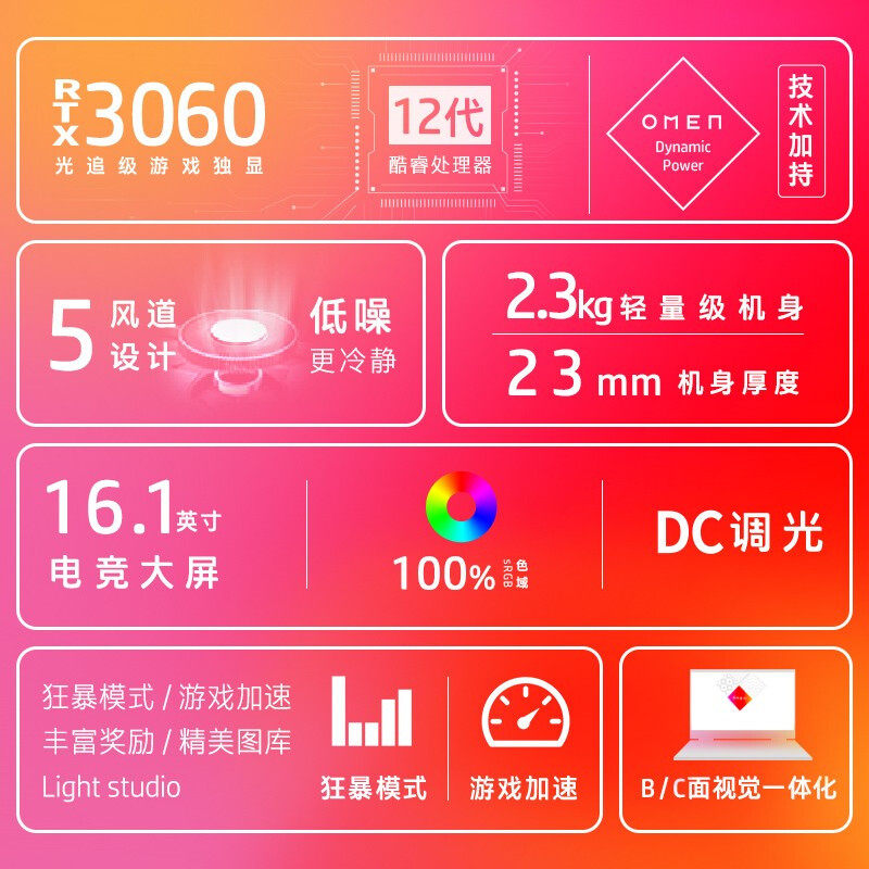 HP/惠普 Игровой ноутбук для школьников, 16.1 дюймов, RTX3060, 165гц, intel core i7, 2022