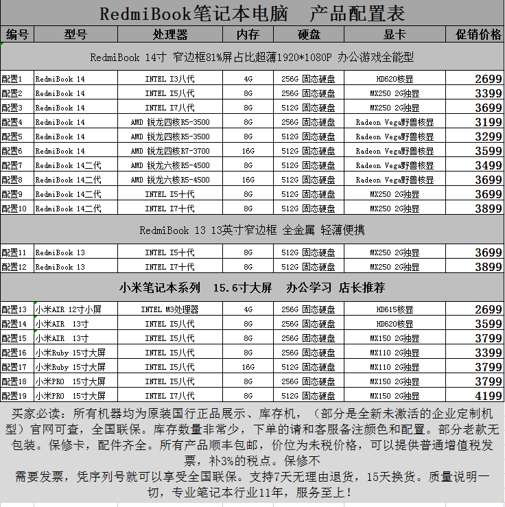 | Цвет: | 1 Redmi 14 I3-8 поколение 4+256, 2 Redmi 14 I5-8 поколения 8+256, 3 Редми 14 I7-8 поколения 8+512, 4 Редми 14 R5-3500 8+256, 5 Редми 14 R5-3500 8+512, 6 Редми 14 R5-3700 16+512, 7 Редми 14 R5-4500 8+512, 8 Редми 14 R5-4500 16+512, 9 Редми 14 И5-10 поколение 8+512, 10 Редми 14 И7-10 поколение 8+512, 11 Redmi 13 I5-10 поколение 8+512, 12 Redmi 13 I7-10 поколение 8+512, 13 Xiaomi AIR12 M3 4+256, 14 Xiaomi AIR13 I5-8-го поколения 8+256, 15 Xiaomi AIR13 I5-8-го поколения с независимой графикой 8+256, 16 Xiaomi Rudy I5-8 поколение 8+256, 17 Xiaomi Rudy I5-8-го поколения 16+512, 18 Xiaomi PRO I5-8-го поколения 8+256, 19 Xiaomi PRO I7-8-го поколения 8+512 |