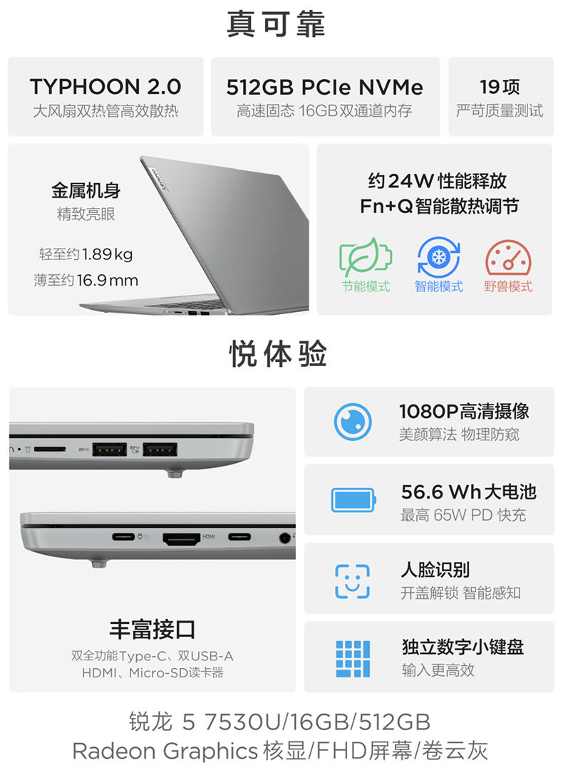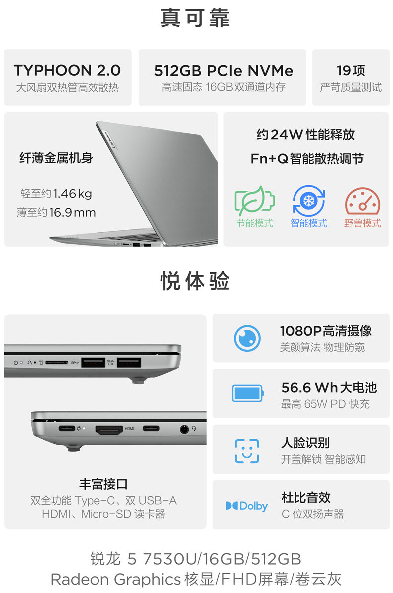 - [23 Xiaoxin 16] R5-7530U/Core Display/FHD/Volume Cloud Ash