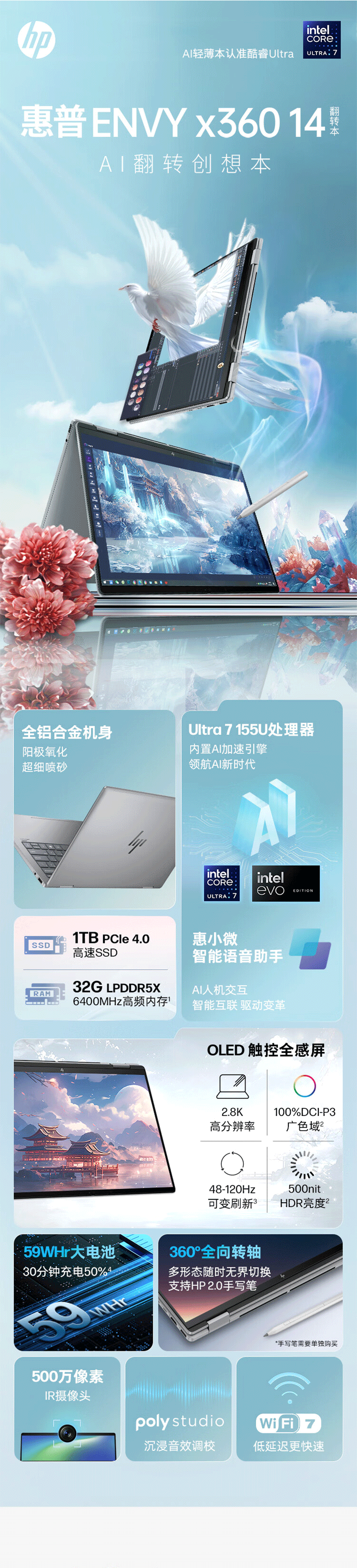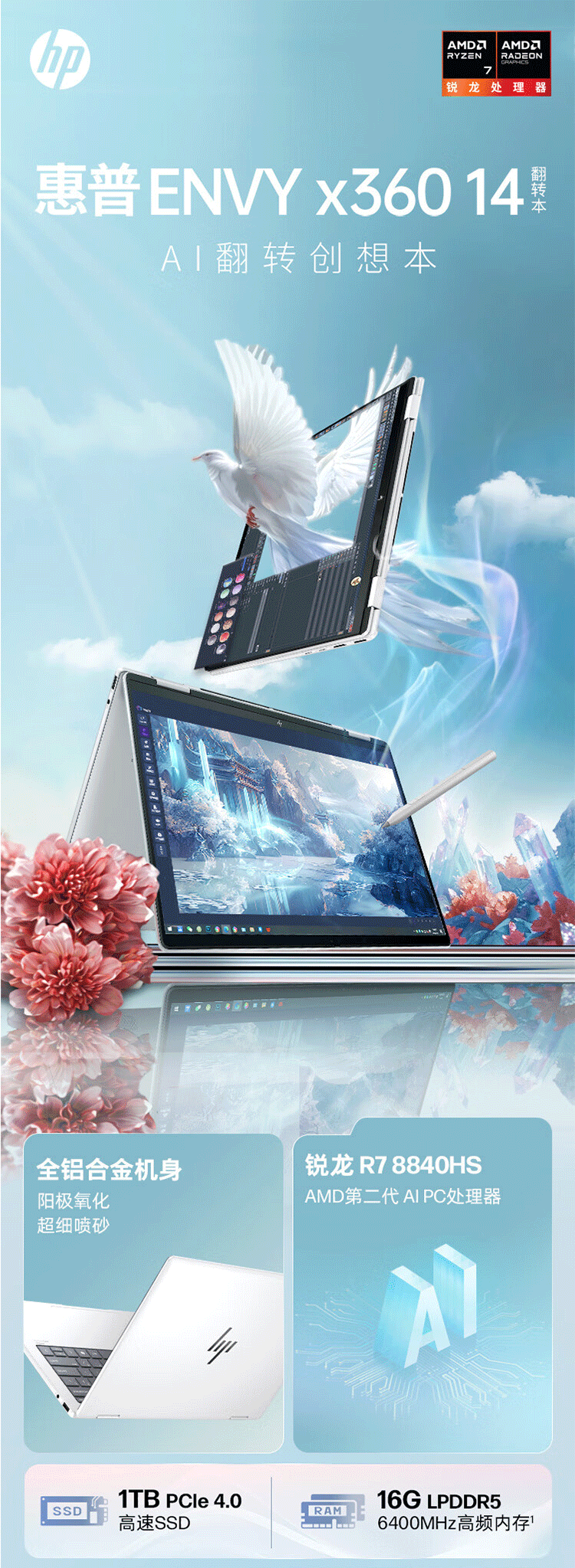 HP/惠普 Envvy14 x360 Flip Touch Ecrem