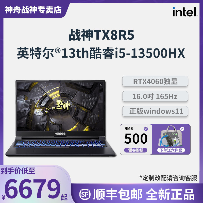 【God of War TX8R5】 Hasee Shenzhou 13-го поколения Core I5-13500HX/RTX4060 8G Независимый дисплей 16GDDR5/512G/15,6-дюймовый 165 Гц Студент Студенческий игровая книжка
