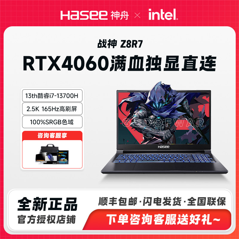 Hasee/神舟 Серия God of War Z8R7 Core I7-13700H/RTX4060 Независимый дисплей Прямой узкий пакет