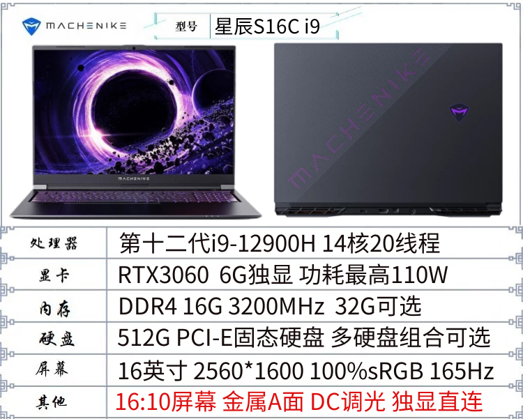 - 12-е поколение I9-12900H+3060 100%SRGB165HZ 16 дюймов