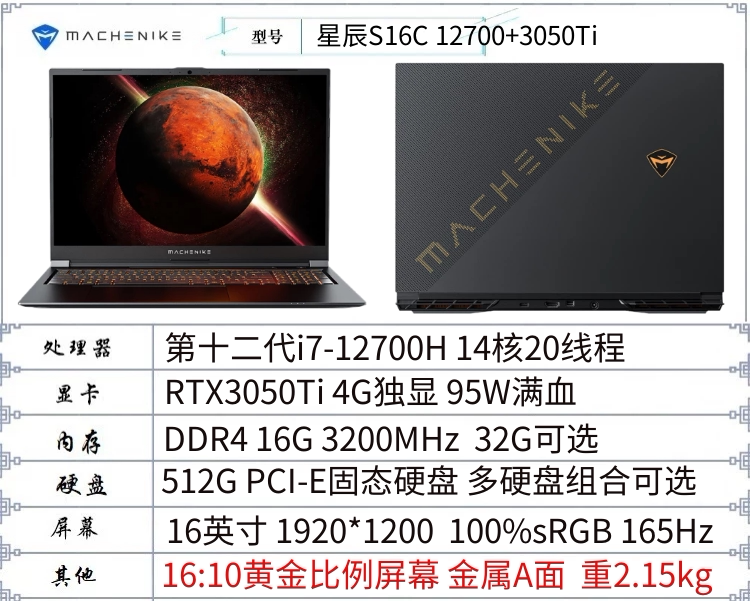 - 12-е поколение I7-12700H+3050TI 100%SRGB 165 Гц 16 дюймов