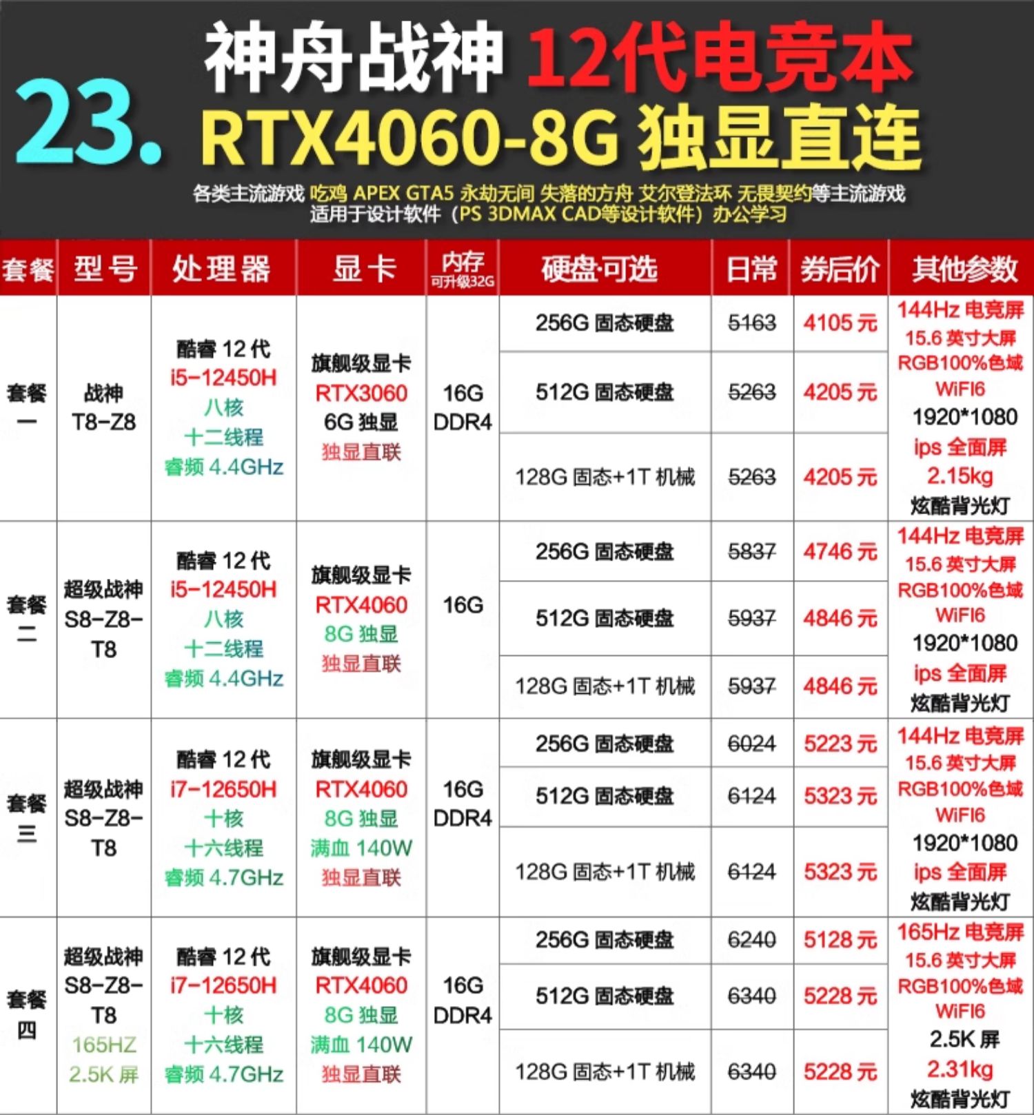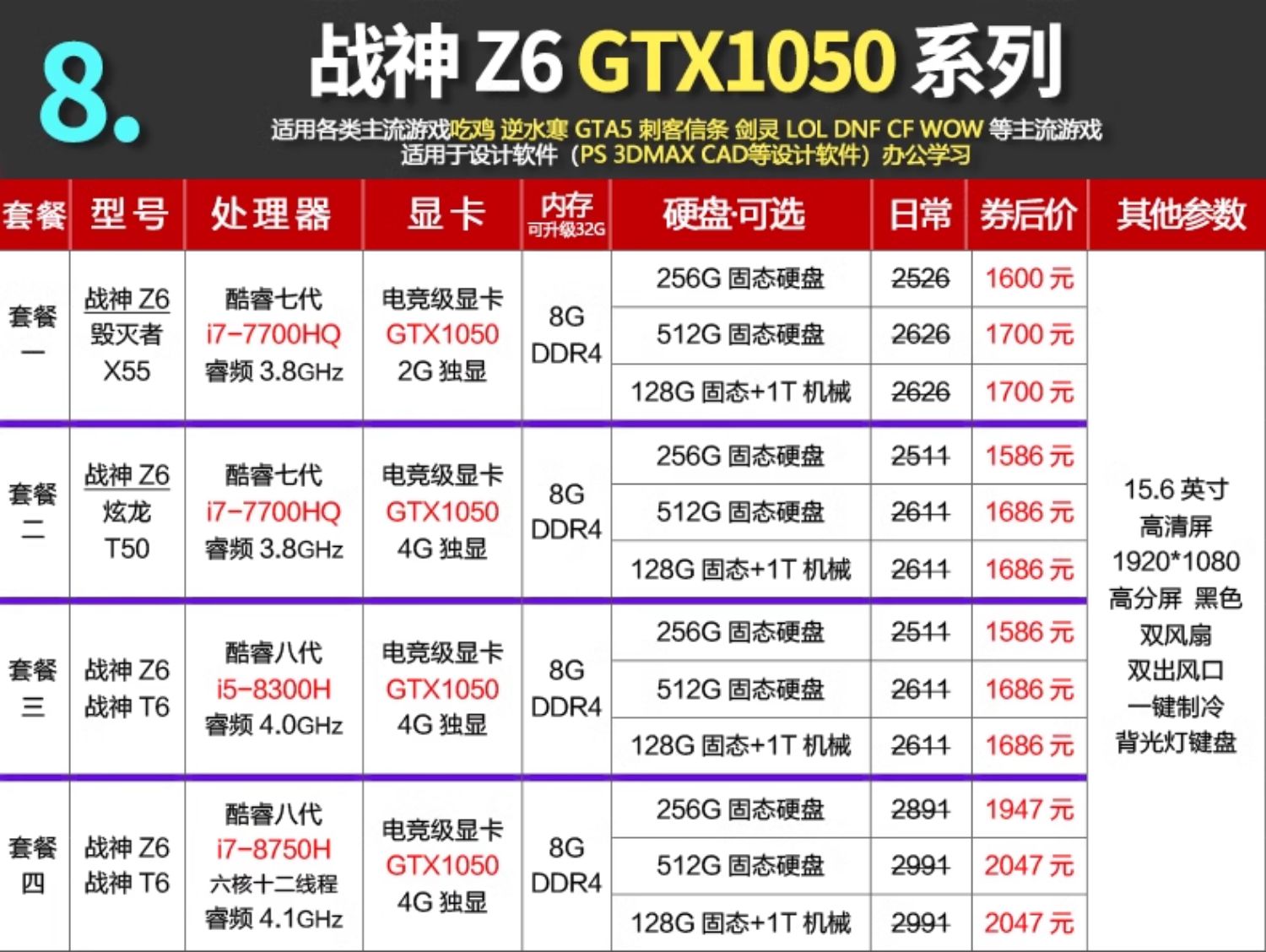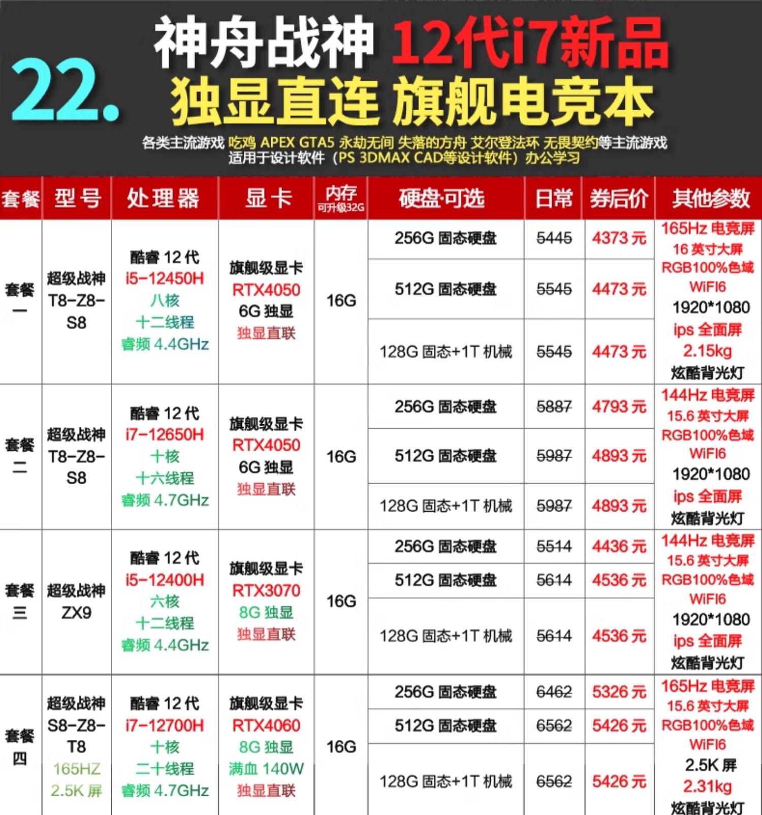 Hasee/神舟 Game Notebook TX8 Shenzhou God of War Z8 Notebook 4060 E-Sports Notebook 4050 Notebook Computer