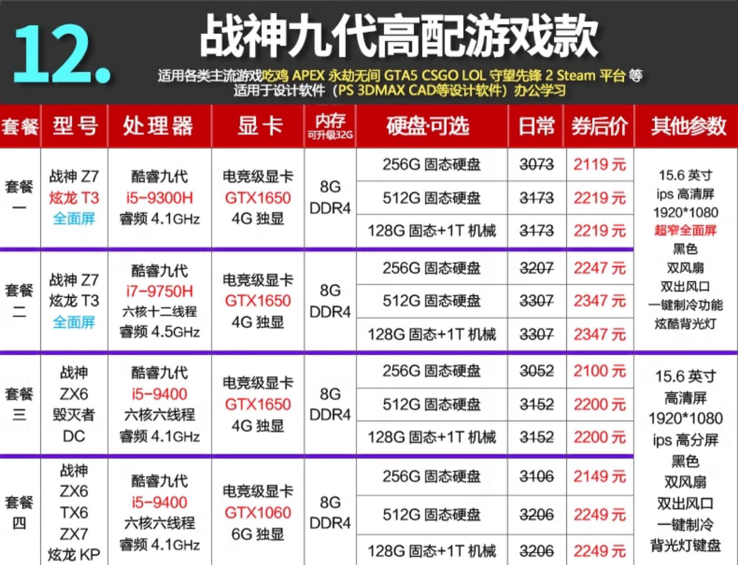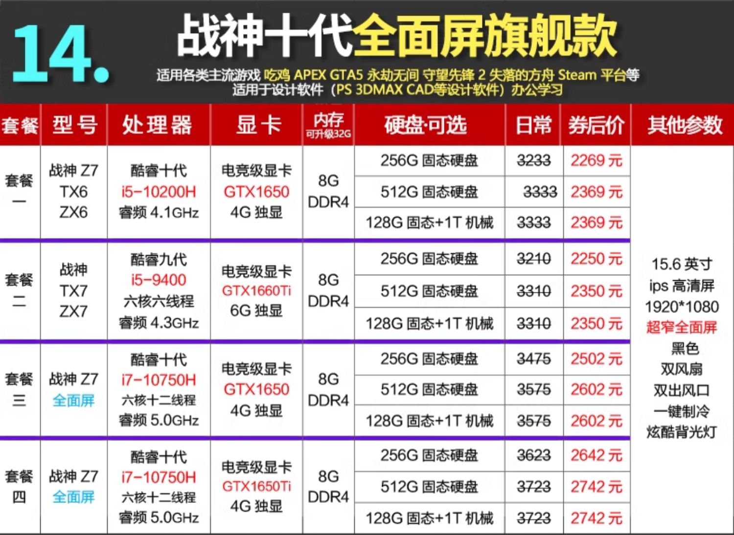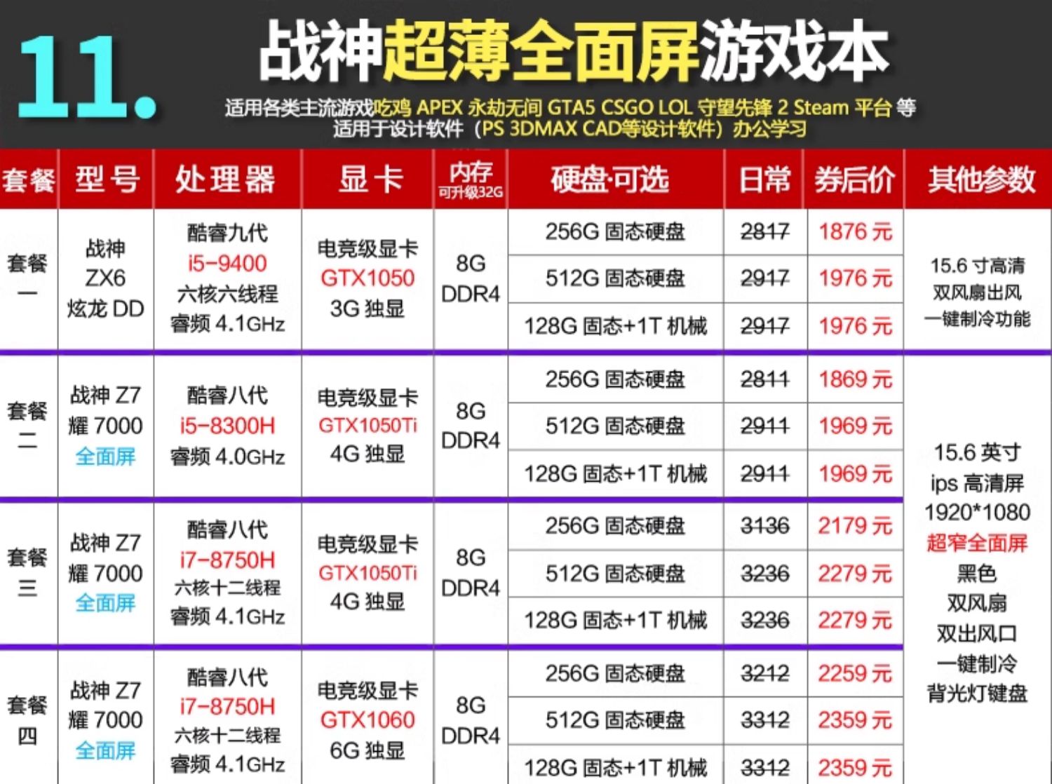 Hasee/神舟 Game Notebook TX8 Shenzhou God of War Z8 Notebook 4060 E-Sports Notebook 4050 Notebook Computer