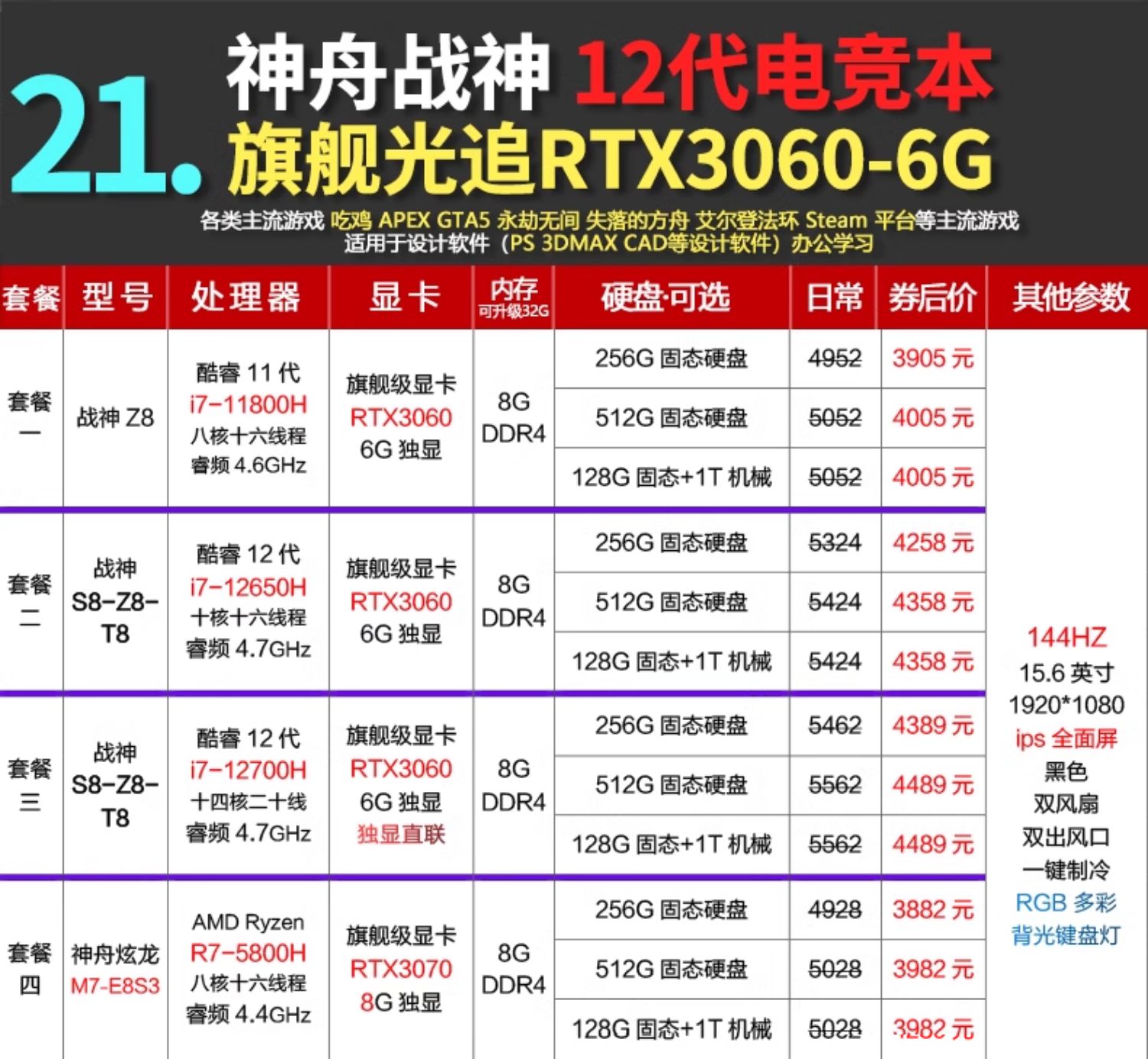 - 21] God of War 12 -го поколения 14 Core Light Chase RTX3060
