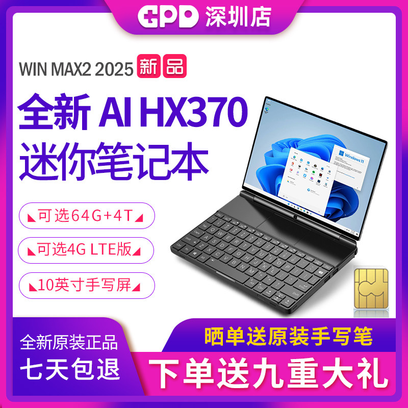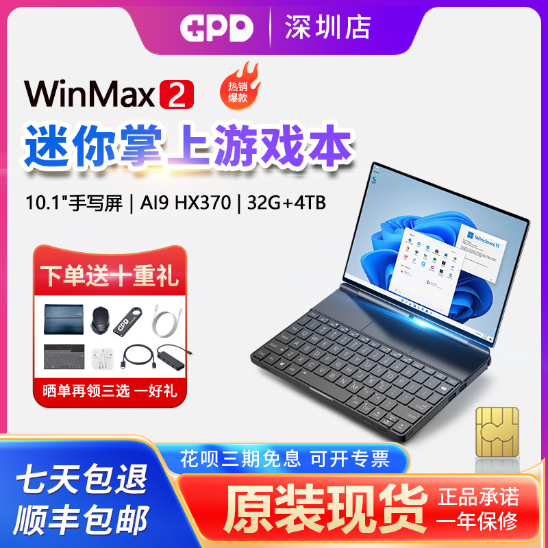 Мини-ноутбук AMD GPD WIN MAX 2, портативный компьютер HX370, небольшой ноутбук, 10,1-дюймовый тонкий и легкий ноутбук WIN MAX 2025, новая версия