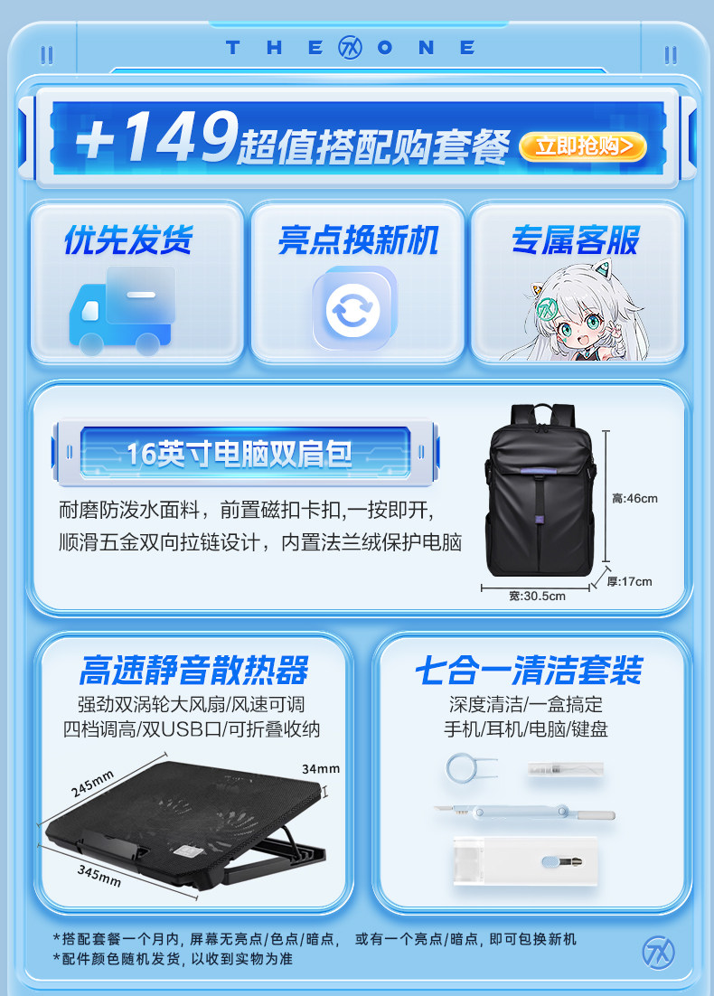 | Тип пакета: | Официальная стандартная конфигурация, Официальный стандарт +149 Юань (рюкзак+радиатор+чистый набор), Официальный стандарт -стандарт+269 юаней, чтобы купить день, выбор дня Mini Three -Mode Mouse/White, Официальный стандарт+599 юаней |