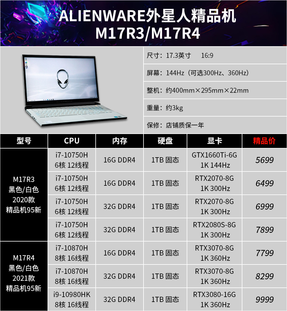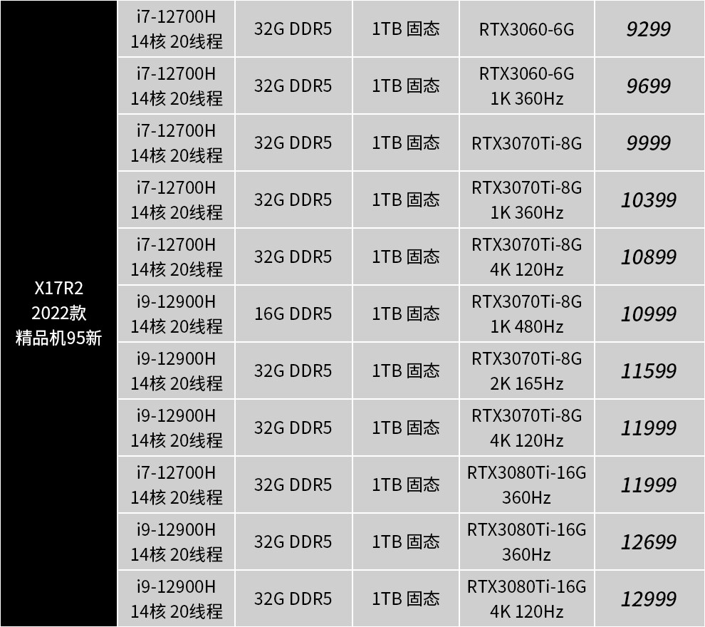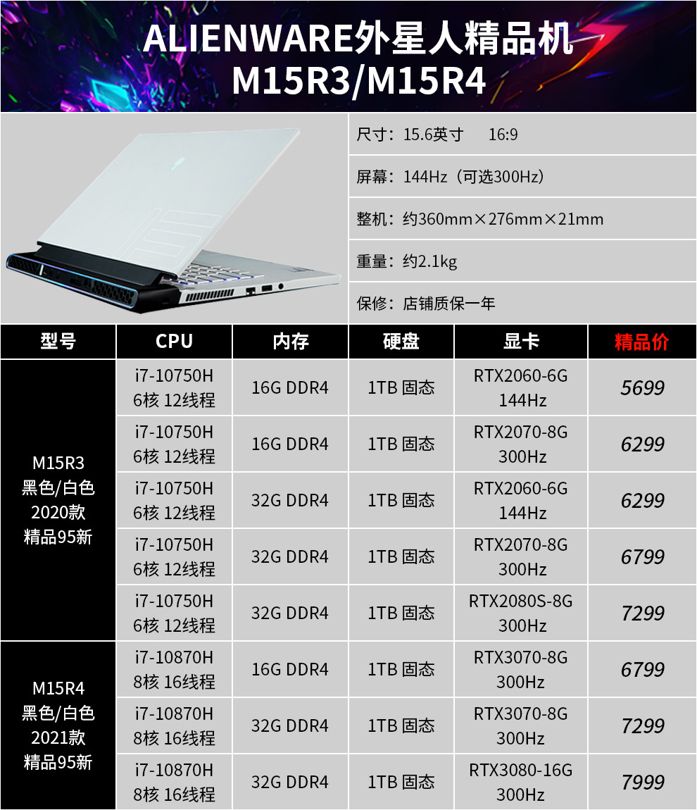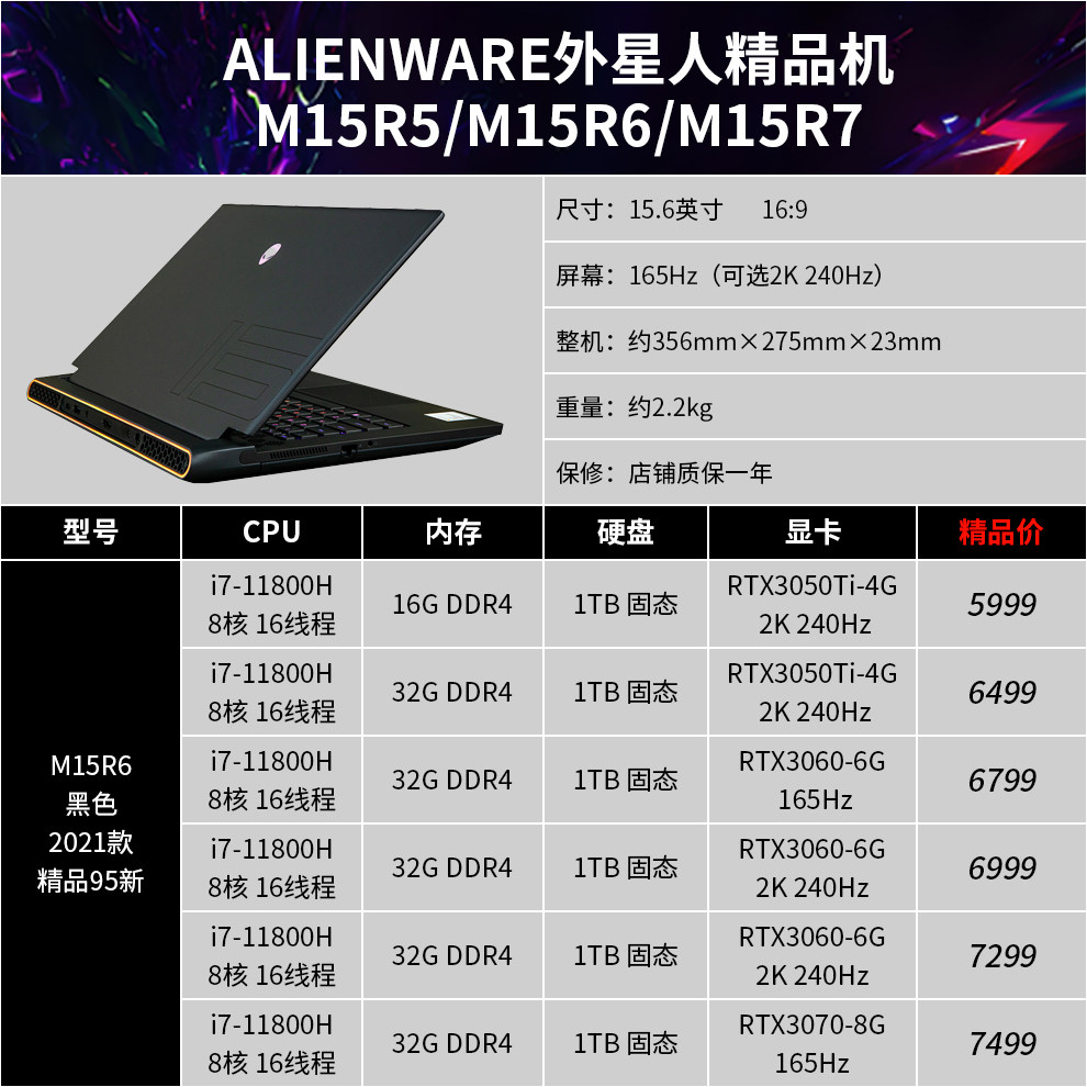 | Цвет: | 15R3: I7-7820/32G/512G/1080, 15R4: i7-8750/32G/двойной жесткий диск/1070, 17R4: i7-7700/32G/двойной жесткий диск/1070 2K, 17R5: i9-8950/32G/двойной жесткий диск/1080 2K, M15R3: 10 -е поколение I7/16G/1T Сплошное состояние/2070/300 Гц, M15R3: 10 -е поколение I9/32G/1T Сплошное состояние/2070S/300 Гц, M17R3: 10 -го поколения I7/16G/1T Сплошное состояние/2070/300 Гц, M17R3: 10 -е поколение I7/32G/1T Сплошное состояние/2080S/300 Гц, M15R4: 10 -е поколение I7/32G/1T Сплошное состояние/3070/300 Гц, M17R4: 10 -е поколение I9/32G/2T Сплошное состояние/3080/360 Гц, M15R6: 11 -е поколение I7/16G/512G твердое состояние/3060 вишня, M15R6: 11 -е поколение I7/32G/1T твердотельное состояние/3070 2K, M15R7: 12 -го поколения I7/16G/512G твердое состояние/3060 вишня, X15R1: 11 -е поколение I9/32G/1T Сплошное состояние/3080 2K, X17R1: 11 -е поколение I9/32G/1T Сплошное состояние/3080 High Brush, M17R5: R7-6800/16G/1T Сплошное состояние/3070TI |