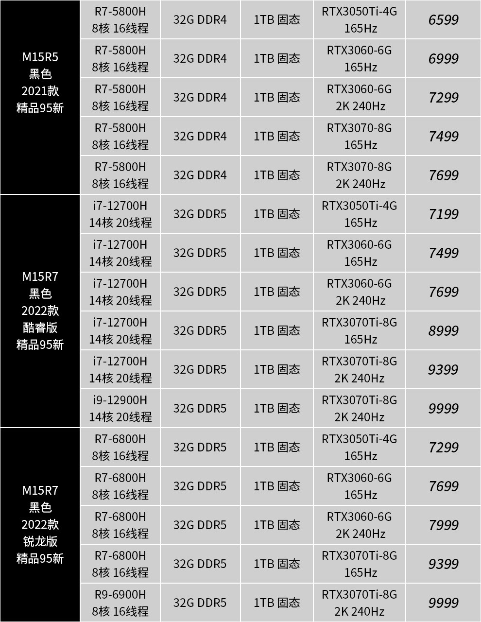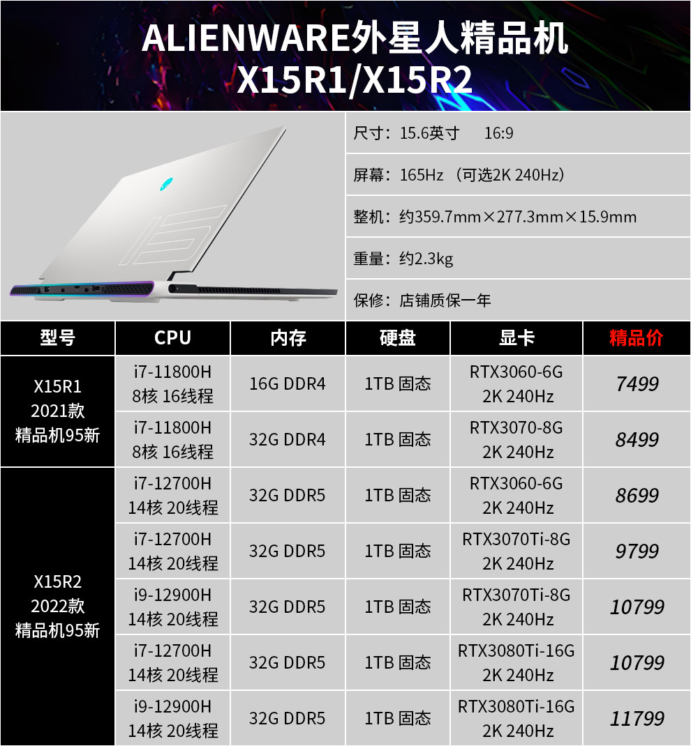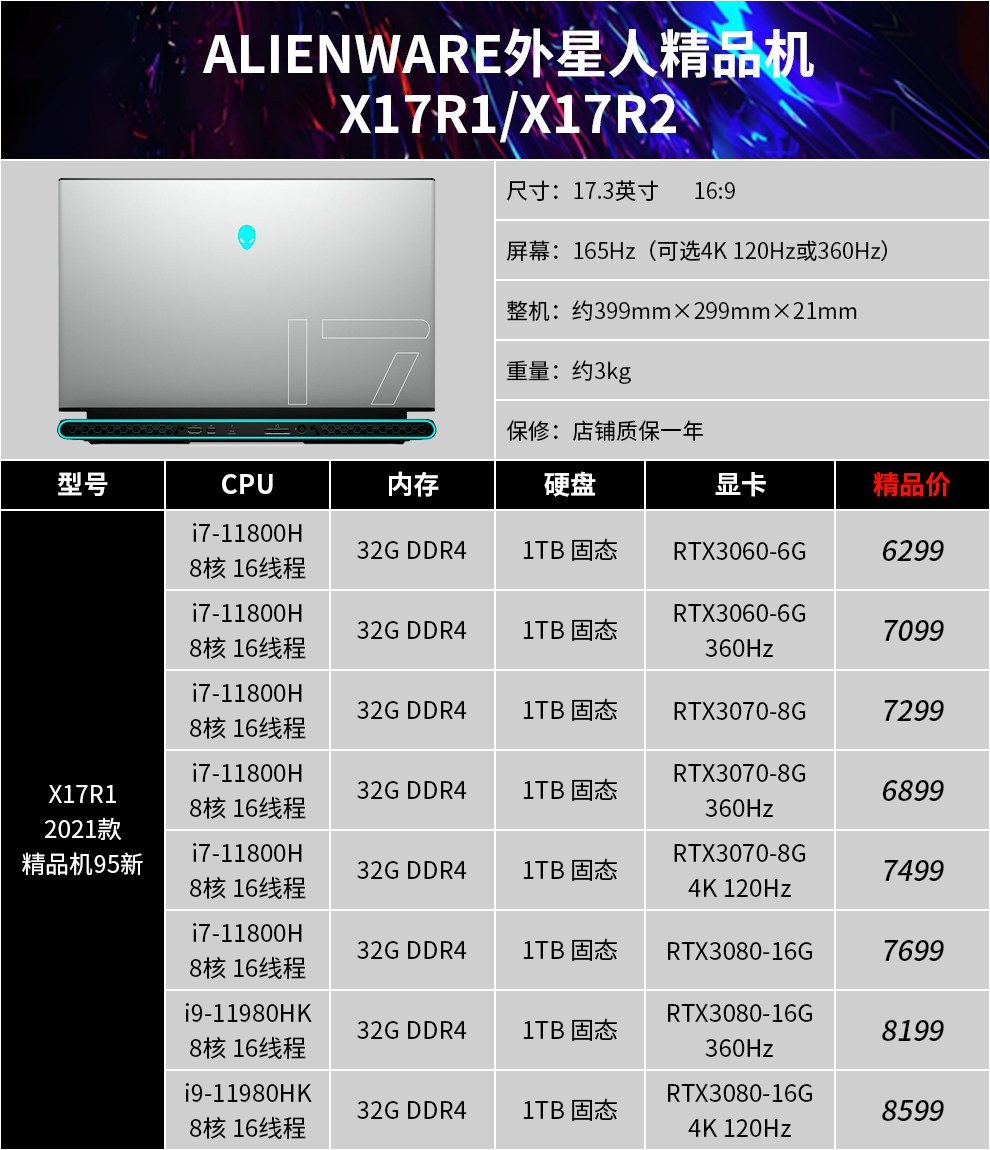 | Цвет: | 15R3: I7-7820/32G/512G/1080, 15R4: i7-8750/32G/двойной жесткий диск/1070, 17R4: i7-7700/32G/двойной жесткий диск/1070 2K, 17R5: i9-8950/32G/двойной жесткий диск/1080 2K, M15R3: 10 -е поколение I7/16G/1T Сплошное состояние/2070/300 Гц, M15R3: 10 -е поколение I9/32G/1T Сплошное состояние/2070S/300 Гц, M17R3: 10 -го поколения I7/16G/1T Сплошное состояние/2070/300 Гц, M17R3: 10 -е поколение I7/32G/1T Сплошное состояние/2080S/300 Гц, M15R4: 10 -е поколение I7/32G/1T Сплошное состояние/3070/300 Гц, M17R4: 10 -е поколение I9/32G/2T Сплошное состояние/3080/360 Гц, M15R6: 11 -е поколение I7/16G/512G твердое состояние/3060 вишня, M15R6: 11 -е поколение I7/32G/1T твердотельное состояние/3070 2K, M15R7: 12 -го поколения I7/16G/512G твердое состояние/3060 вишня, X15R1: 11 -е поколение I9/32G/1T Сплошное состояние/3080 2K, X17R1: 11 -е поколение I9/32G/1T Сплошное состояние/3080 High Brush, M17R5: R7-6800/16G/1T Сплошное состояние/3070TI |