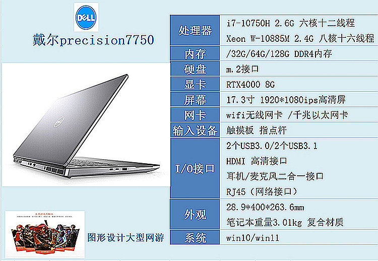 Dell/戴尔 Дизайнерский ноутбук, 7730 вариантов дизайна, мобильная рабочая станция, 17 дюймов, широкий экран