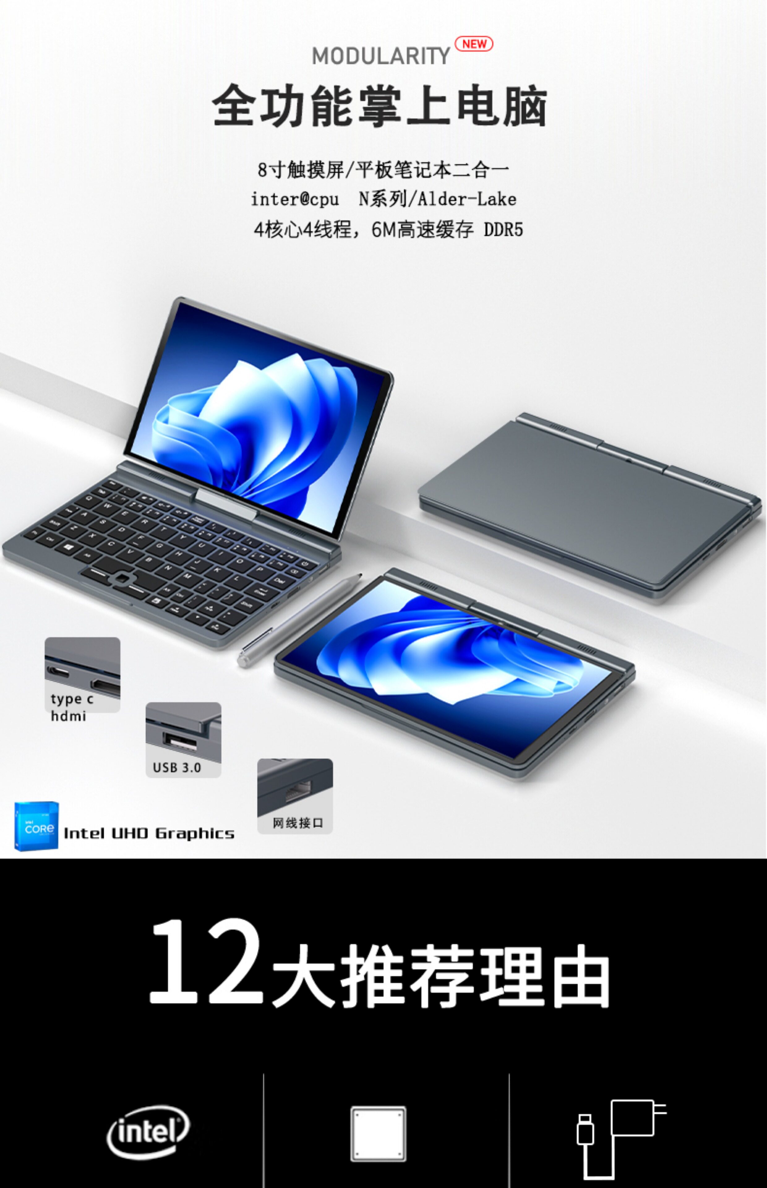 Сенсорный карманный портативный легкий и тонкий маленький ноутбук, сенсорный экран, 8 дюймов, бизнес-версия, 2 в 1