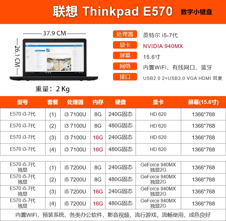ThinkPad Ноутбук, E570, E580, 15.6 дюймов, intel core i7, широкий экран