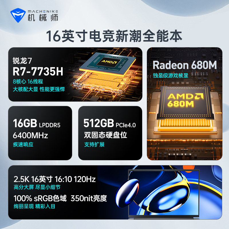 MACHENIKE Механическая игра Dawn 16air Ryzen версии R7-7735H Студенческий ноутбук