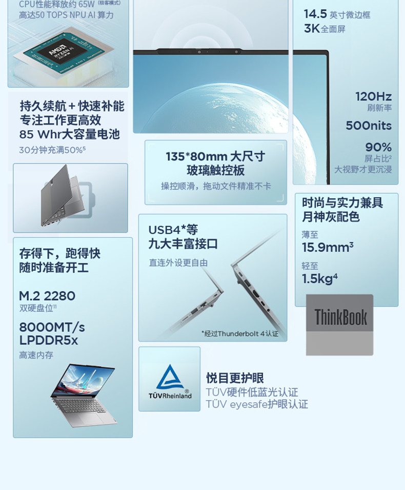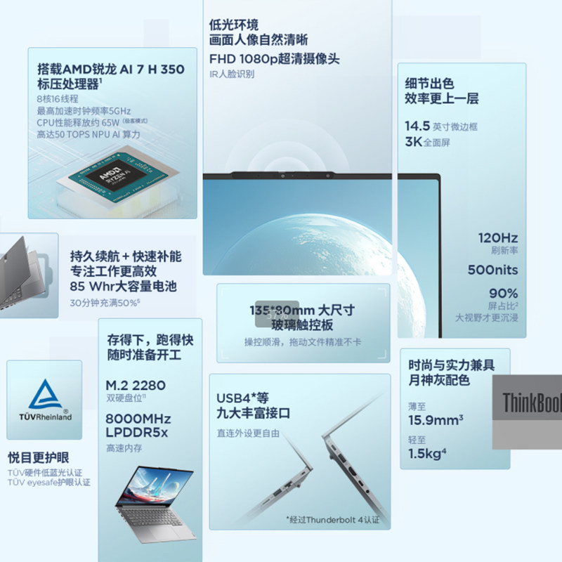[20% национальная субсидия] ThinkPad Lenovo Thinkbook14+16+AMD2025 Ryzen R7 H260 (8845H обновленная версия) 1T Тонкий и светлый офисный ноутбук компьютер