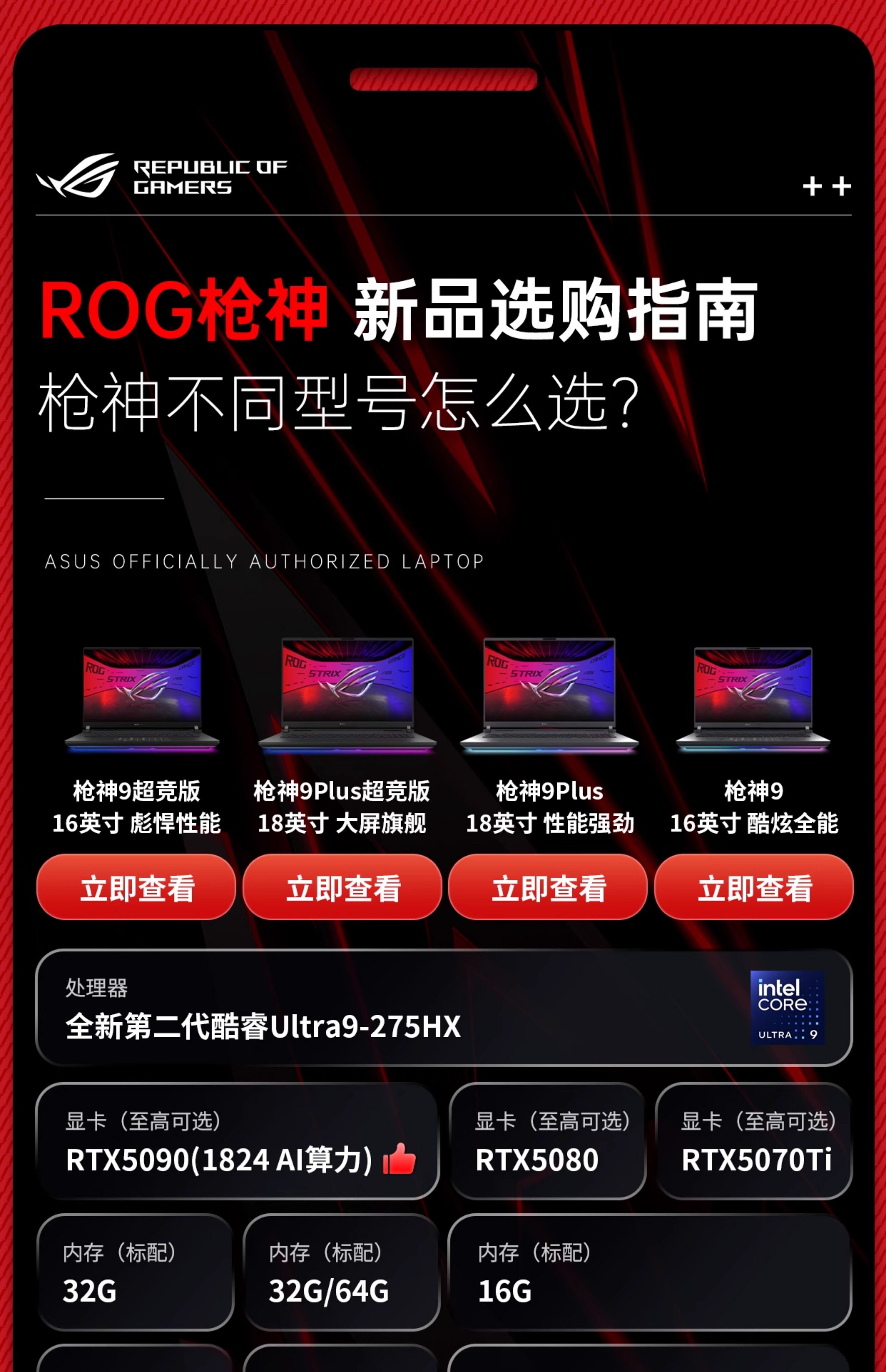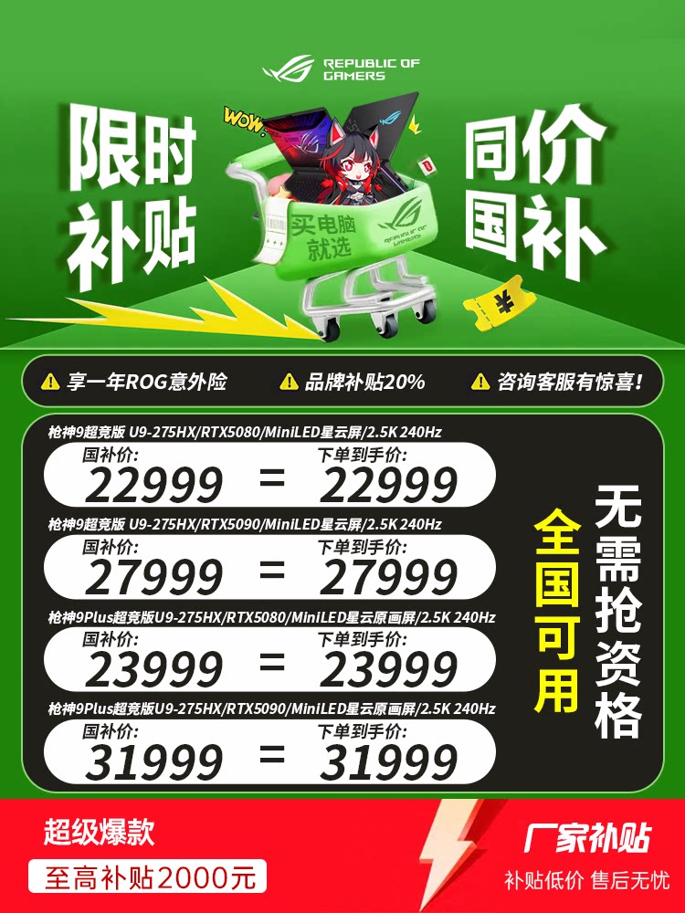 [Brand Subsidy 20%] Rog Gun Gun Bod 9plus Super Competition Edition 5080 5090 Gaming Laptop Computer