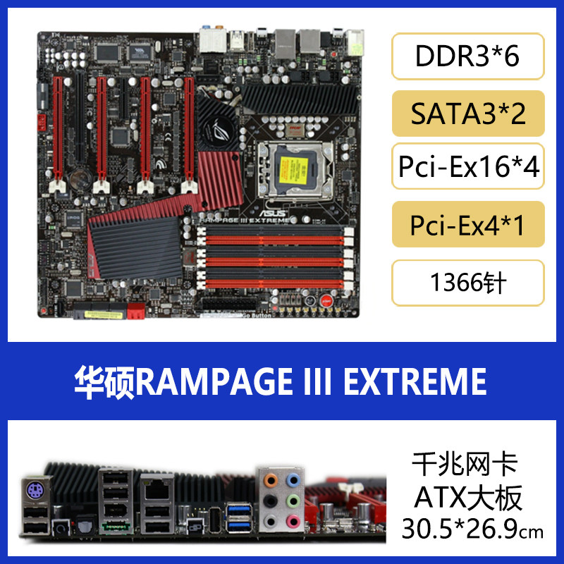 Asus Asus Rampage III геновое игровое плеера R3G X58 Материнская плата Matx Small Board 1366