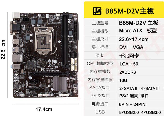 Gigabyte/Giga B85M-D2V SI 1150 DDR3 Панель памяти Все интегрированная материнская плата настольных компьютеров