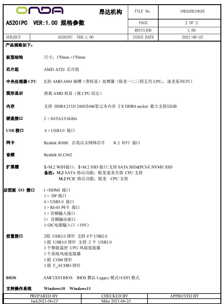 Onda A320-IPC/a520ipc материнская плата AM4 настольный компьютер ddr4 двухканальный m.2 двойной протокол