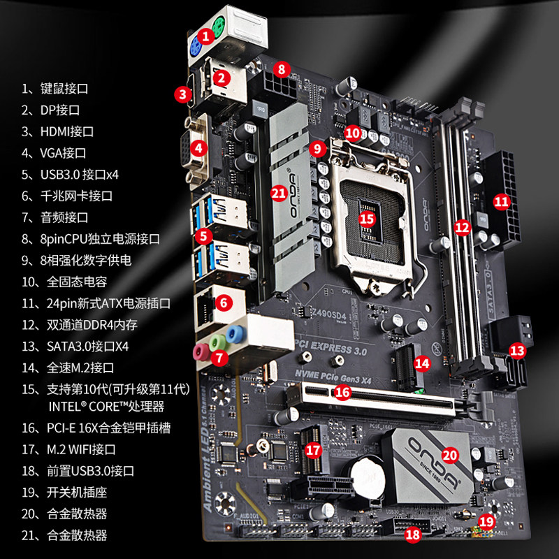 Z490SD4 Onda Mainboard Desktop Machine компьютер Mainboard LGA1200 Игла DDR4 Двухканал.