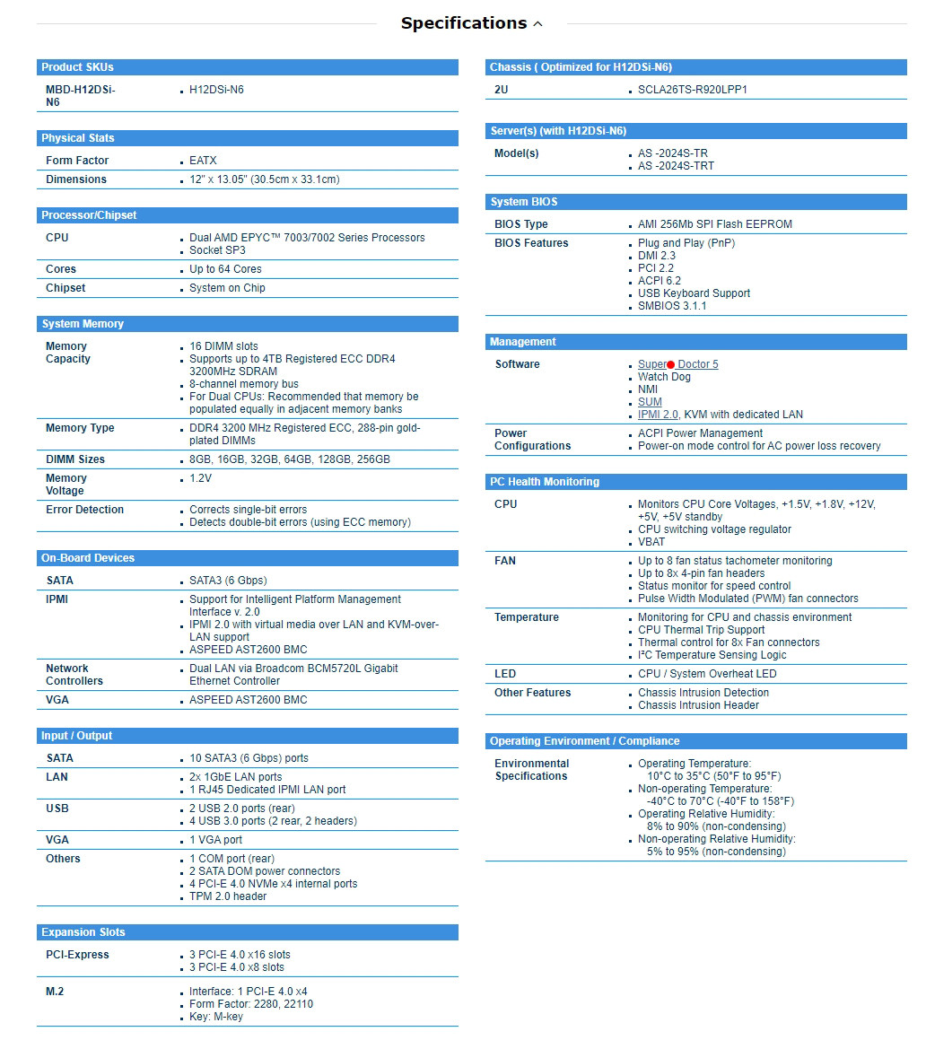 | Цвет: | H12DSI-N6 (порт Gigabit Ethernet), H12DSI-NT6 (сетевой порт 10G) |