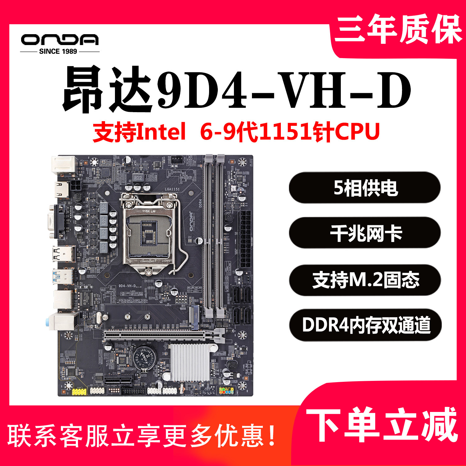 Настольный компьютер ONDA 9D4-VH-D 1151 Генеральная плата 6789 Генерационный процессор поддерживает двойной канал M.2 SOLID DDR4