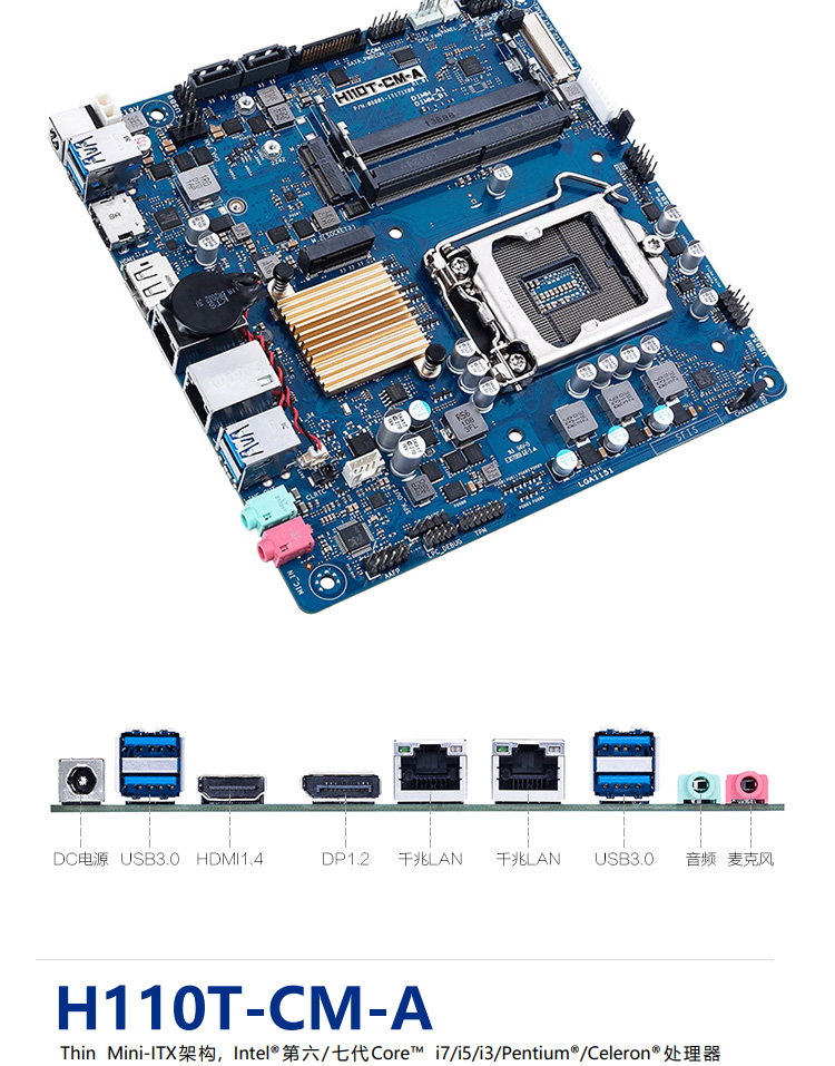 Asus Asus Motherboard H110T-CM-A Двойной сетевой порт 6/7 Генерация ITX Ультратонкий промышленный контроль NAS Soft Route DP4K Плата