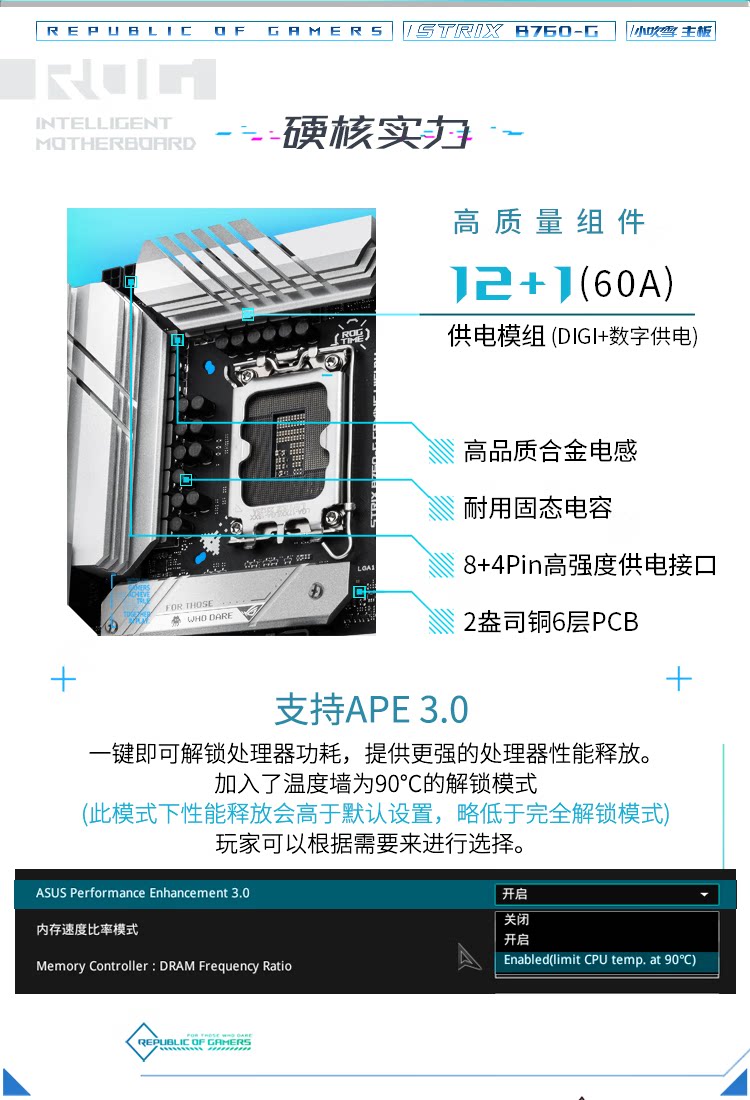 Rog Asus Strix B760-G Gaming Wi-Fi6e D4 Small Blow Snow Snow Matx Motherboard DDR4 Ультрачастотная доска