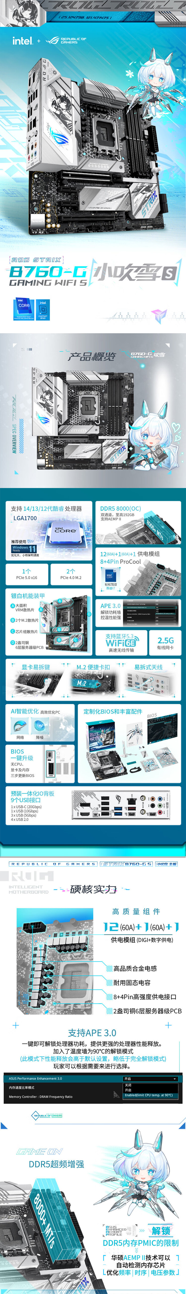 Asus/华硕 Rog Strix B760-G Gaming Wi-Fi S Siaowu Snow Matherboard поддерживает DDR5